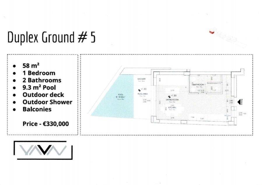 A 58m2 apartment is available for sale in Elounda, very close to the sandy beach, 8km from cosmopolitan Agios Nikolaos and 73km from the International Airport of Heraklion. It opens into an open area living room-kitchen and has a comfortable bedroom and two bathrooms. From the living room lead us to the terrace where there is a swimming pool. It is developed within a complex of 8 apartments in total, making it an excellent investment choice close to the amenities of Elounda.