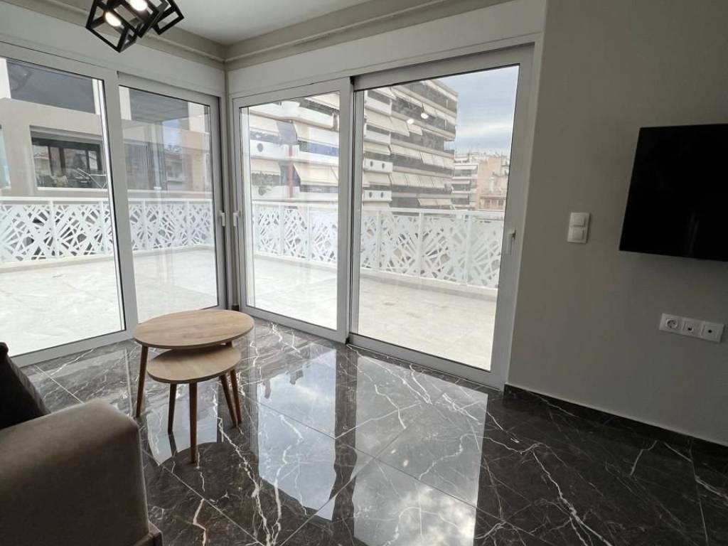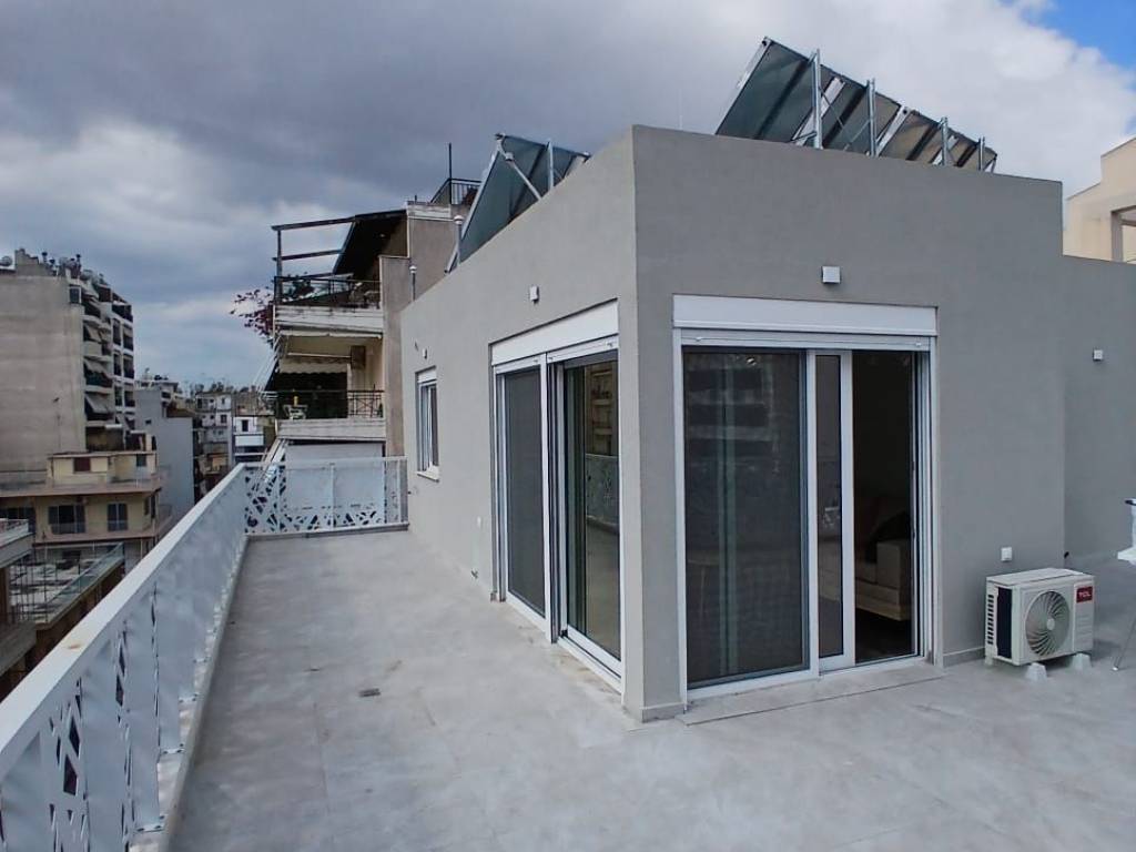 Penthouse maisonette in a newly built building, fully furnished and equipped, just a short walk (4 minutes) from the train station at Kato Petralona with an open parking space (pilot in the garden) in a corner modern building 1 block from the central one.