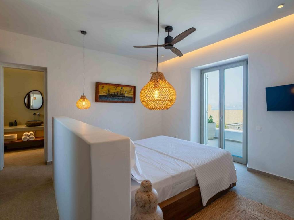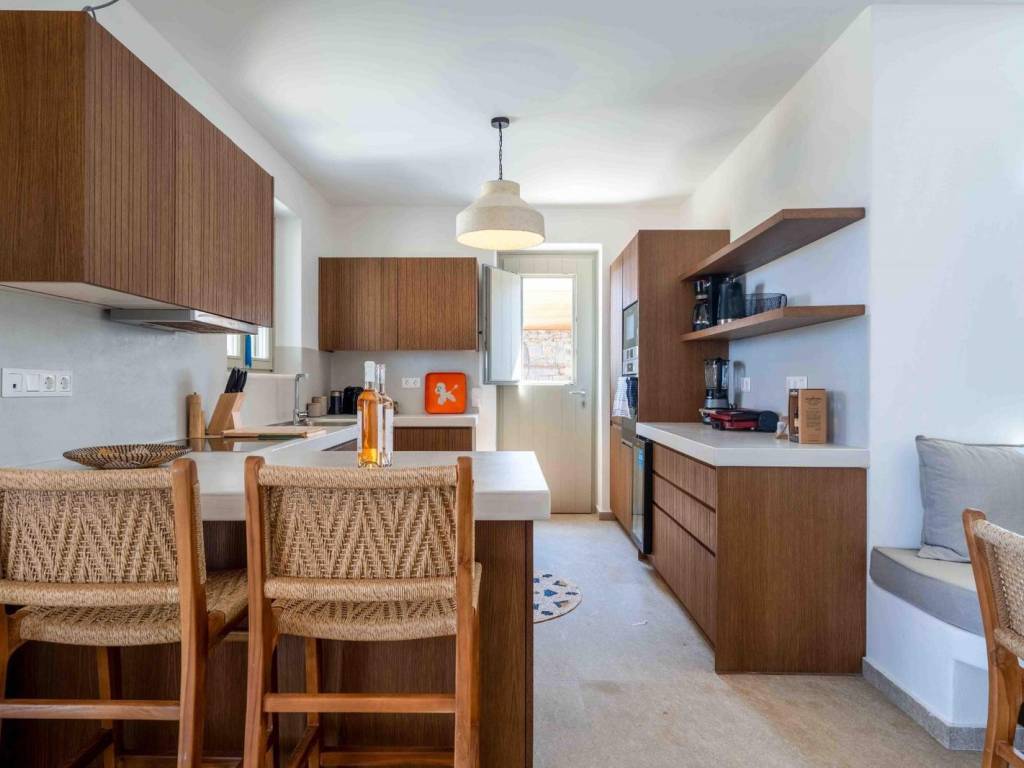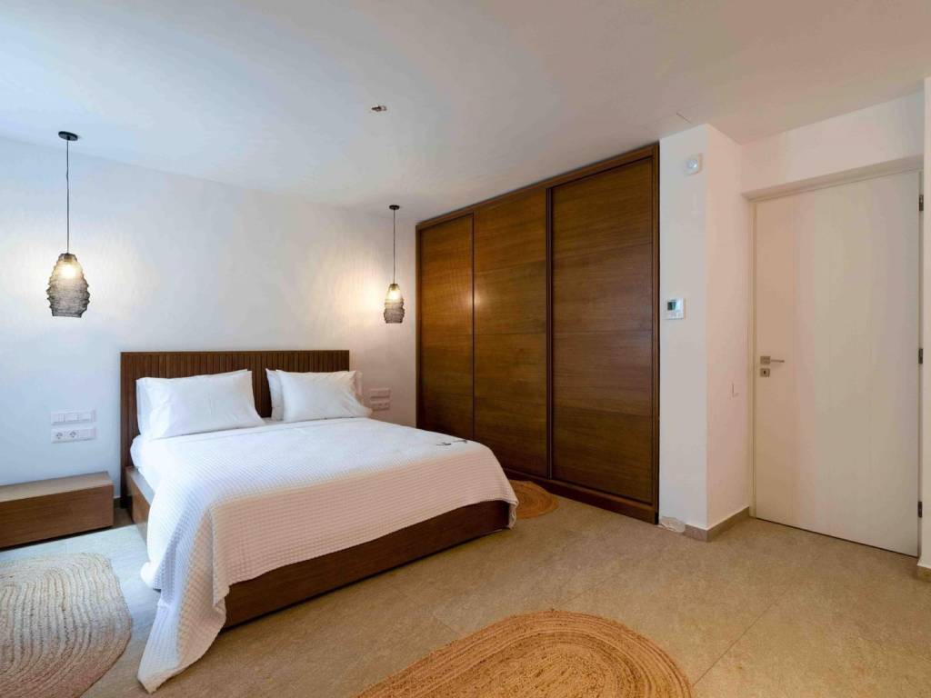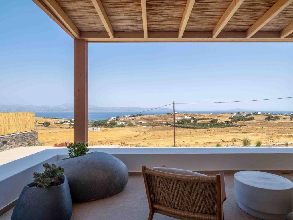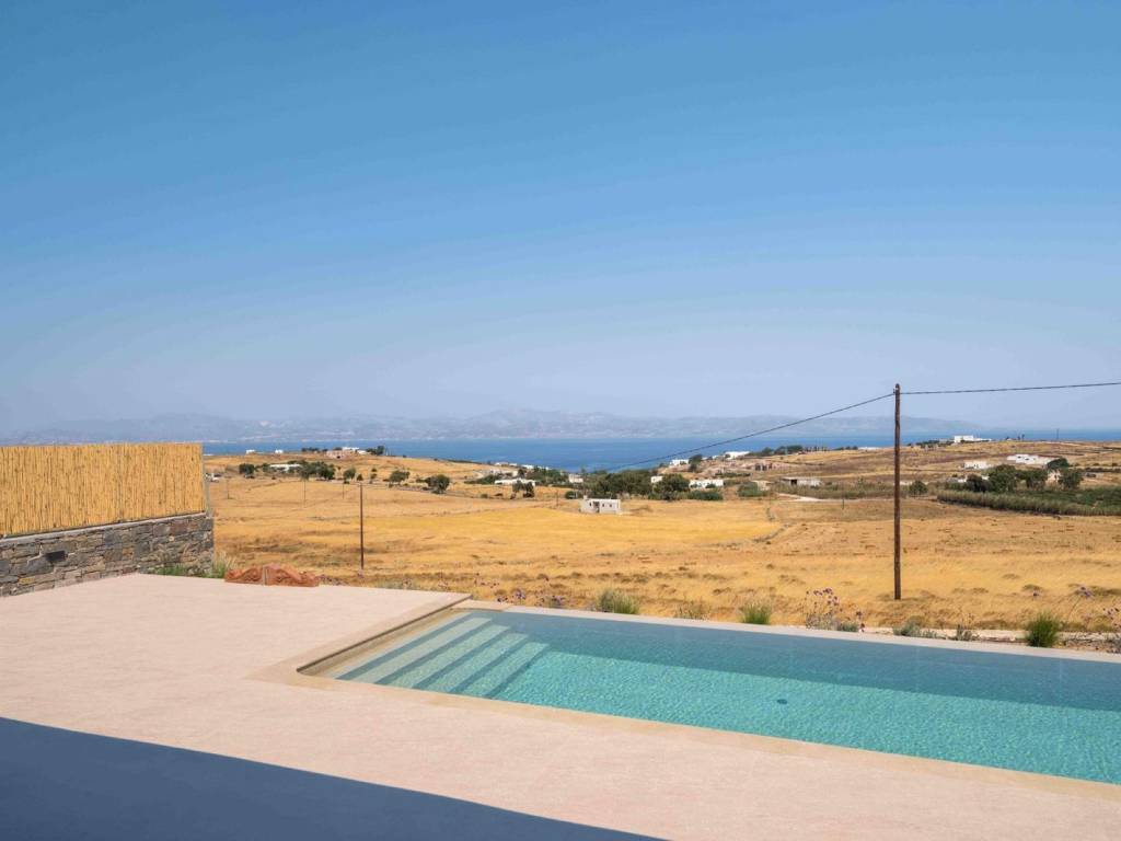 The villa is a brand new, semi detached villa of 240 sqm with exclusive outdoor living space . The villa is stratigically located in a quiet area away from the noise but in proximity (20 min walking distance) to the world famous Golden Beach of Paros and all the amenities and many restaurants. Villa Kallisti offers an unobstructed views of the sea and the neighboring island of Naxos. The villa is fully furnished and equipped with the highest quality, modern amenities such as central heating/cooling systems, zoned heating /cooling capabilities, double glazed windows, traditional solid wood external shutters, Wi-Fi , central security system and security door. The villa spreads in 3 levels: On the ground floor there is a spacious sitting/dinning area with direct connection to the outdoor living space in fully equipped outdoors kitchen and dining area and a swimming pool . The open-plan kitchen is fully equipped with all the modern appliances (conventional and microwave oven, dishwasher, wine cooler, large fridge). On the same level there is a large master bedroom (with a freestanding bed) with ensuite bathroom. This room has direct access to the pool and enjoys breathtaking views. On the second floor, there’s a seclusive large second master bedroom with an en-suite bathroom and a small private terrace where one can privately enjoy the Aegean sunset and a splendid view of the islands landscape. On the semi-basement there are two additional master bedrooms with en suite bathrooms and an additional guest wc, laundry room with a separate washer and dryer and a storage room as well The villa is decorated by the famous Italian internal designer Giulia Rinaldi from Milan with top of the line material and combines a modern/contemporary style with traditional/local touches. The outdoors space of the Villa is designed in in a typical Mediterranean style with with extensive stone work, large pergolas and lots of space surrounding the a spacious swimming pool (40 sqm2) There is an outdoors kitchen with a built-in grill and the large dining area (sitting 12 guests), ideal for entertainment. . The property has parking for 3 cars (can accommodate electric charging) The Cycladic architectural style is combined with outdoor spaces that include an impressive swimming pool, a garden with local plants and comfortable terraces for relaxation and views of the sea and Naxos. Ample parking and outdoor kitchen with grill. The residence is an ideal choice for those looking for a luxurious and comfortable living space in one of the most beautiful islands of the Cyclades. Location: Paros is located in the central Aegean Sea, it belongs to the Cyclades complex and is the third largest island in Greece. Unique Features: Paros is one of the top holiday destinations for Greeks and foreign visitors as it is distinguished for its cosmopolitan character and the intense lifestyle that it offers to its visitors. At the same time, the island offers a variety of organized or quiet beaches with clear blue waters and also has world famous beaches for kitesurfing and windsurfing. Every visitor has the opportunity to explore the most picturesque spots of the island, Naoussa and Parikia, enjoying a wide choice of cafes, restaurants and bars. Accessibility: The island of Paros is accessible from the ports of Rafina and Piraeus, ferries depart several times throughout the day and during the summer season. The island of Paros can be reached by plane as the island has an Airport with several flights operating mainly during the summer period when demand is high. Investment Opportunity: Buying property in Paros is a huge investment as the island is one of the top holiday destinations around the world, keeping its reputation high and attracting more and more investors.