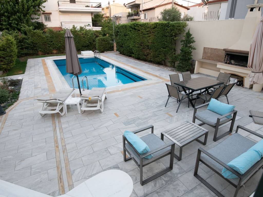 In the residentially developed and quiet Gerakas, this impressive corner maisonette of 420 sqm in a complex of three residences, built in 1999, within a privately owned plot of 490 sqm, with landscaped garden and large communal pool. The entrance to the property is via an elegant door leading to the outside area, where the swimming pool and a lush garden dominate. Crossing the courtyard, the visitor is directed to the main entrance of the complex of three maisonettes. Entering through the heavy iron front door, we are led into a spacious hallway where there is a lift, which provides access to all levels of the residence. The main entrance to the maisonette leads to an impressive marble hallway with a distinctive design, leading to the bright dining room, stylish open-plan kitchen and spacious living room with fireplace. Direct access to the terrace overlooking the pool enhances the sense of connection between the interior and exterior, while luxury and the use of high quality materials - such as marble - are evident in every detail. The ground floor is completed with a guest WC. On the first floor there are three master bedrooms with balconies, while the attic serves as a self-contained retreat with its own bedroom, bathroom and spacious veranda with unobstructed views. The semi-basement of 100 sqm., fully configured as an open-plan space with kitchen, fireplace and bathroom, offers multiple possibilities of utilization, either as an independent apartment or as a hospitality space, while maintaining a sense of privacy and comfort. The residence has marble and wood floors, aluminum windows with double glazing and screens, independent heating system per level with oil, boiler, air conditioning, safe, storage room, as well as two underground parking spaces. The combination of architectural elegance, functionality and quality of construction makes the property a unique choice for both owner-occupation and high quality investment. Gerakas is a municipal community and the seat of the Municipality of Pallini in the Regional Unit of East Attica, within the Region of Attica. It is located on the northeastern edge of the Athens Urban Complex and is considered a northern suburb of Athens. The population of the area is 30,000, the area covers 11 square kilometers, and the density is 2,722 inhabitants per square kilometer according to the 2011 census. Known neighborhoods of Gerakas include Gargittos, Stavros, and Balana. It borders Agia Paraskevi, Penteli, and Chalandri. It is a suburb that has experienced rapid development in recent years. With the passage of the Attiki Odos and the metro, its character changed dramatically, transforming into an urban area of Athens with simultaneous modernization of its infrastructure. In the northwestern part of the area lies the Koufos Hill (at the foothills of the observatory) on the border with the Pentelikos settlement of Agios Dimitrios. Gerakas is being developed at a fast pace following the establishment of the Doukissis Plakentias metro station, without losing its urban beauty. By law, houses are constructed only with tiled roofs, there are many parks, and generally, it is a beautiful environment for families with children.