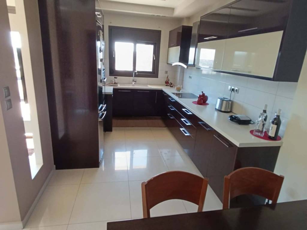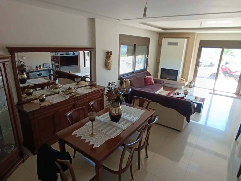 For sale is an excellent ground floor detached house, 213 sq m, in Heraklion, Crete, just after ELMEPA (former TEI) and just 5 km from the city center and 3 km from the beach of Ammoudara. This wonderful property was built in 2014 (building permit issued in 2012) and is located on a fenced plot of 1700 square meters, with a perimeter stone fence. The property extends over 2 levels, ground floor 133 sq m and basement 80 sq m and has a remaining building area of ​​40 sq m. The ground floor consists of a very spacious living room with energy fireplace, kitchen with auxiliary storage room, office, wc, bathroom, three bedrooms with large built-in wardrobes, as well as a laundry room. The exterior has been thermally insulated and the terrace has also been insulated with thermal and waterproofing. The frames are aluminum with a thermal switch and in the living room the shutters have electric mechanisms. The entrance gate is also electric. Hot water is provided by a triple energy solar water heater and at the same time in the total area there are ten productive olive trees as well as various other trees It has a sea view of the Cretan Sea but also a mountain view as it looks towards both Psiloritis and Giuchta. The view is unique and unobstructed all around.