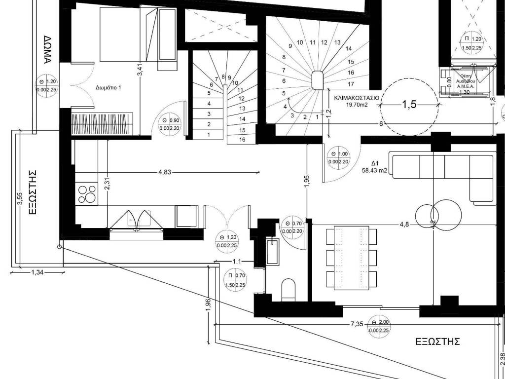 Κτίριο σύγχρονων κατοικιών επί των οδών Μιχαήλ-Αγγέλου και Σεφέρη γωνία , σχεδιασμένο στα πρότυπα του βιοκλιματικού σχεδιασμού. Πωλείται υπερπολυτελής μεζονέτα 100 τ.μ. 4ου και 5ου ορόφου με εξαιρετική θέα όλο το κέντρο της πόλης. Οι προδιαγραφές της κατασκευής υπερβαίνουν σημαντικά τις απαιτήσεις του κανονισμού με καθώς χρησιμοποιείτε για την κατασκευή του φέροντα οργανισμού οπλισμένο σκυρόδεμα C30/37. Τοιχοποιία συνολικής μόνωση 30εκ. εξολοκλήρου με Ορθοblock 20εκ. που εντάσσονται στην κατηγορία θερμομονωτικών στοιχείων πλήρωσης και εξωτερική μόνωση 10 εκ. έτσι ο ενεργειακός σχεδιασμός του κτηρίου ελαχιστοποιεί τις απαιτήσεις κατανάλωσης ενέργειας για θέρμανση και ψύξη. Εξωτερικά κουφώματα αλουμινίου με υψηλά επίπεδα θερμομόνωσης και ηχομόνωσης με ρολά και σίτες στο χρώμα των κουφωμάτων. Θέρμανση με ατομικό λέβητα φυσικού αερίου.