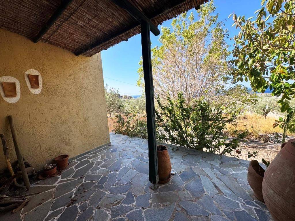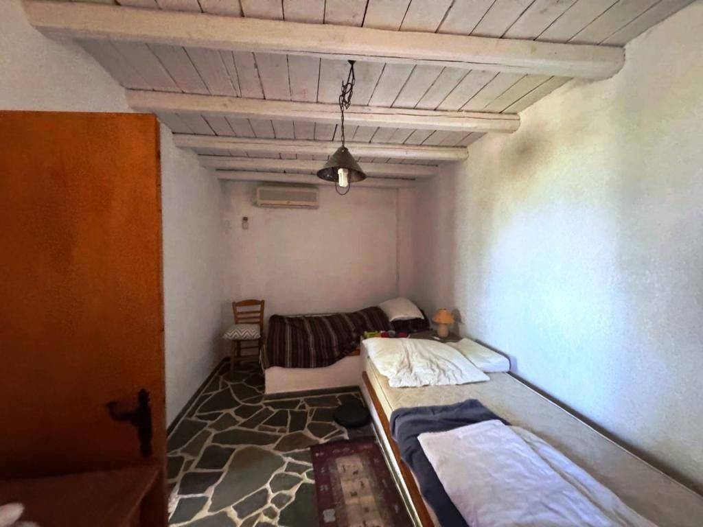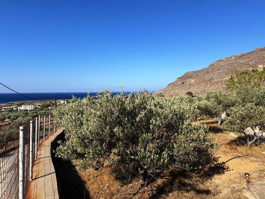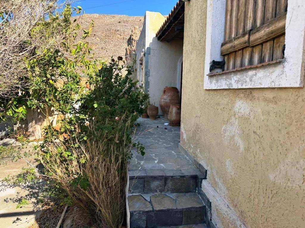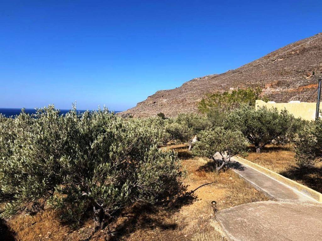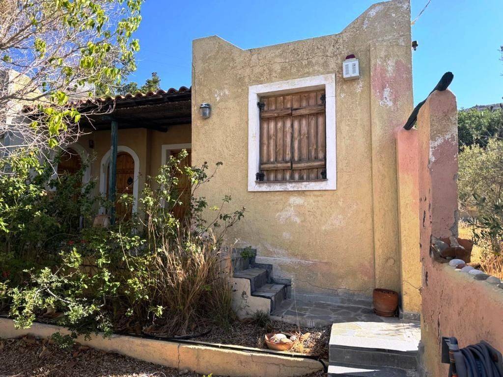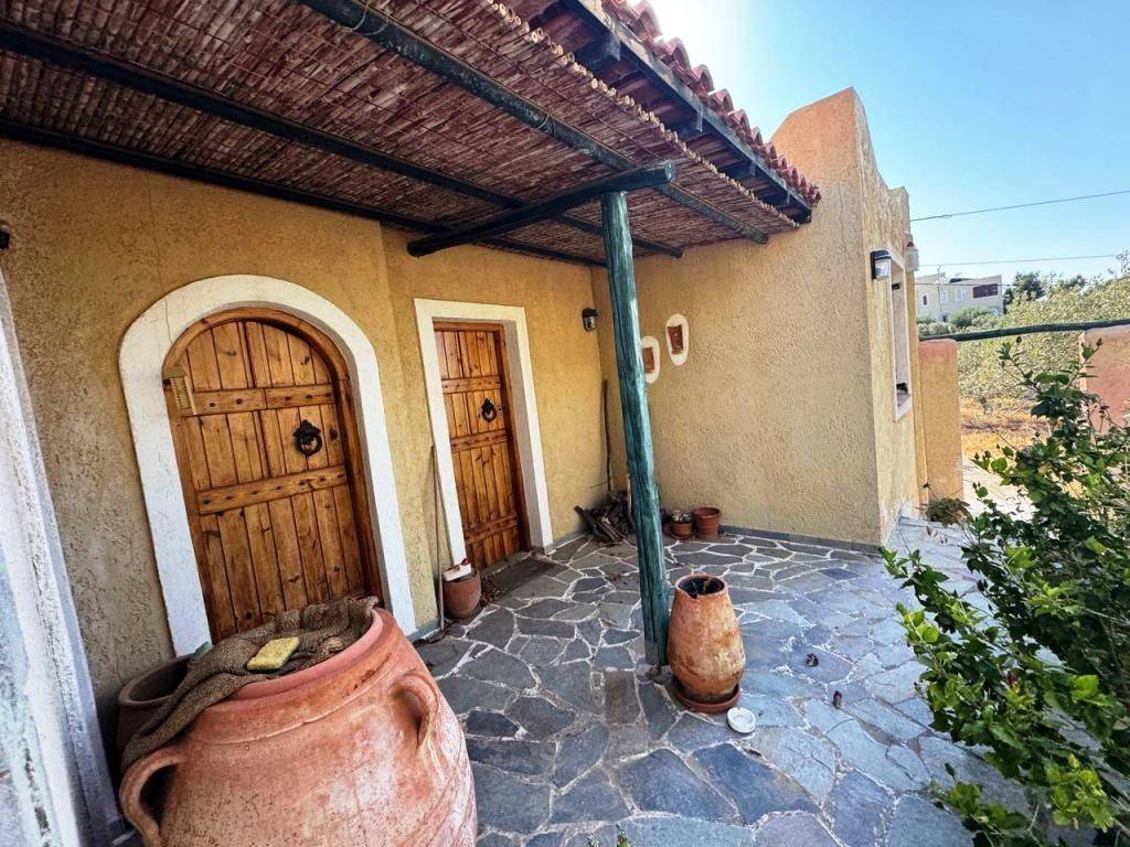 Kalo Nero, Makry Gialos, South East Crete: Beautiful house just 500meters from the sea. The property is 38.79m2 on a plot of 679.86m2. The property also has an adjoining plot of 317,46m2 out of the village plan making it a total of 997.32m2 plot with olive trees. The house consists of a bedroom with A/C, an open plan living area with wood burner and a kitchen and a bathroom. The property has a lovely yard and enjoys views to sea and mountains. Lastly, it is located 6km from Makry Gialos resort and from all amenities.
