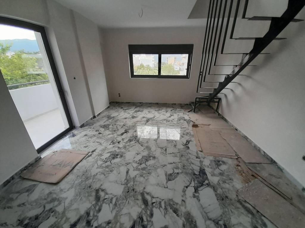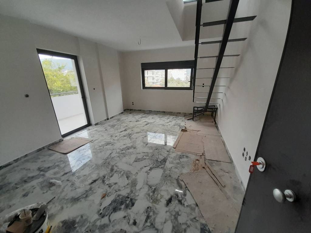 Newly built maisonette apartment on the 1st - 2nd floor with a total interior area of ​​50 sq m. for sale near the eastern beach of Kalamata. 1st floor: living room, kitchen 2nd floor: bedroom, bathroom The two levels are connected by an internal staircase. With a large balcony and air conditioning. Immediately available.