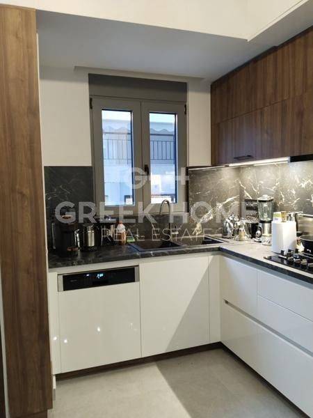 Paleo Faliro, Rema Pikrodafnis - Maisonette 105sqm bedrooms 4, master bedroom, 1st - 2nd, newly built, year built 2020, energy class A+, living room, hall, kitchen, bathroom, wc, heating type: autonomous (natural gas), air condition, parking open space, quiet, dual aspect apartment, luminous, unobstructed view, frontage, electric roller shutters, storage space, solar heater, boiler, external thermal insulation, fireplace, balconies, large balconies, tents, elevator, built in appliances, thermal shut-off frames, double glazed windows, door screen, wood & tile floors, handicap ramp, night electricity discount rate, secure door, alarm, video doorbell, internal staircase, satellite, internet, pets allowed.