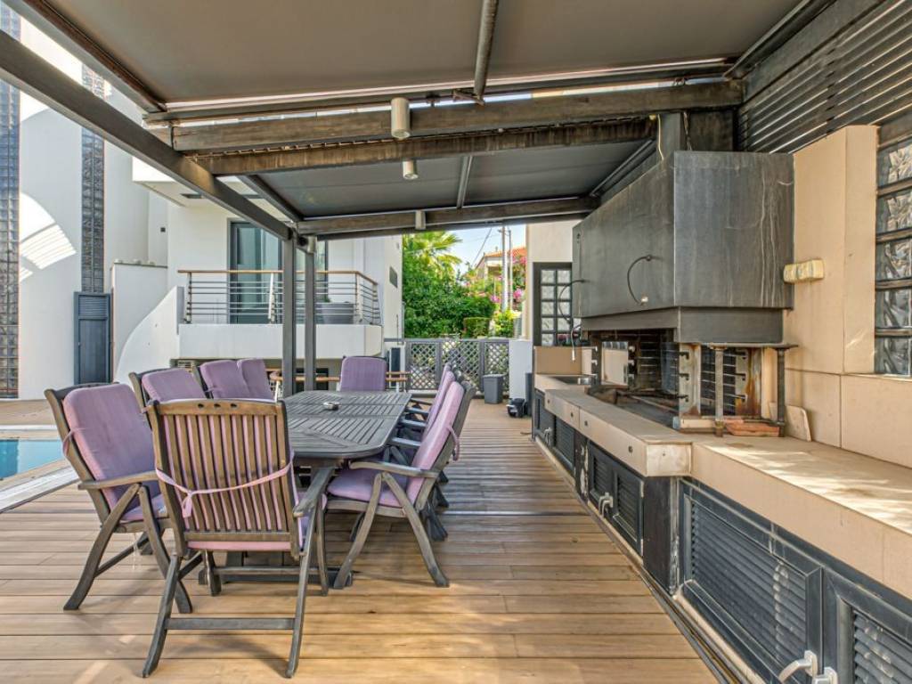 This is a rare and exceptional opportunity for those seeking something truly unique — a high-end family property, built in 2008, that offers the perfect balance of shared living and individual privacy. Situated on the prestigious Athenian Riviera, in the heart of Glyfada, this exclusive gated private villa complex is designed to meet the needs of large or multi-generational families. The property consists of three fully detached luxury homes, each with its own entrance and main door, thoughtfully arranged around a beautifully landscaped shared swimming pool and barbecue area. This one-of-a-kind residence allows loved ones to live side by side while enjoying the comfort of their own private space. Each villa offers approximately 340 sqm of refined living space across four levels, including four bedrooms (with a luxurious master suite), four modern bathrooms, expansive living and dining areas, balcony spaces, a private playroom, laundry room, ample storage, and two private parking spaces. Each home is equipped with a high-level alarm system, providing peace of mind and security, along with a unique surprise feature that adds a personal touch. Shared amenities are truly exceptional, featuring a private indoor bowling alley, a serene sauna, a traditional hamam, and a luxurious jacuzzi, creating a resort-style experience for residents and guests alike. This property is not only a luxurious family residence — it is a rare real estate offering in one of Greece’s most prestigious locations. For those looking for a home that brings family together without compromising on space, independence, or elegance, this exclusive villa complex in Glyfada is a once-in-a-lifetime opportunity. Location: Glyfada is the commercial hub of the Athens Riviera with busy commercial pace during the day and lively nightlife till dawn. It is a fashion destination with many branded boutiques but also many shops with a character and style. Blocked on one side of the city by the unique 18-hole golf course and next to it with hiking and cycling trails, Glyfada promises to offer the best for all ways of life. Unique features: A modern seaside destination with easy access to beaches, cafes, restaurants and summer beach bars and clubs. Glyfada is close to international schools and is a safe environment for raising children, has many opportunities for entertainment, fitness and sports and is an investment option with rewarding benefits. Also in the area you will find cinemas, modern boutiques, restaurants for every taste and budget, bars, lively outdoor life and one of the largest marinas along the coast. Accessibility: Glyfada is well connected to the city center and the coast by metro, tram and buses and is only a 30-minute drive from the port of Piraeus, offering a quick getaway to the islands and 35 minutes from the international airport. Investment dynamics: Glyfada has always been attractive to real estate investors and with the new reconstruction project of Elliniko, it is ready to experience a strong rise in property prices.