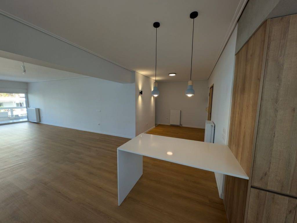 A fully renovated apartment near Glyfada Golf for rent. It offers a large reception area with direct access to the terrace, a beautiful fully equipped with appliances open plan kitchen, four bedrooms, two modern bathrooms and a fully equipped laundry room with washer and dryer. The interior features beautiful wooden floors, air conditioning throughout and a fire place. The property also includes private parking. Ideally located in a quiet and sought-after area, this apartment is perfect for those looking for proximity to Glyfada center, comfort and convenience. Could be furnished at an extra cost.