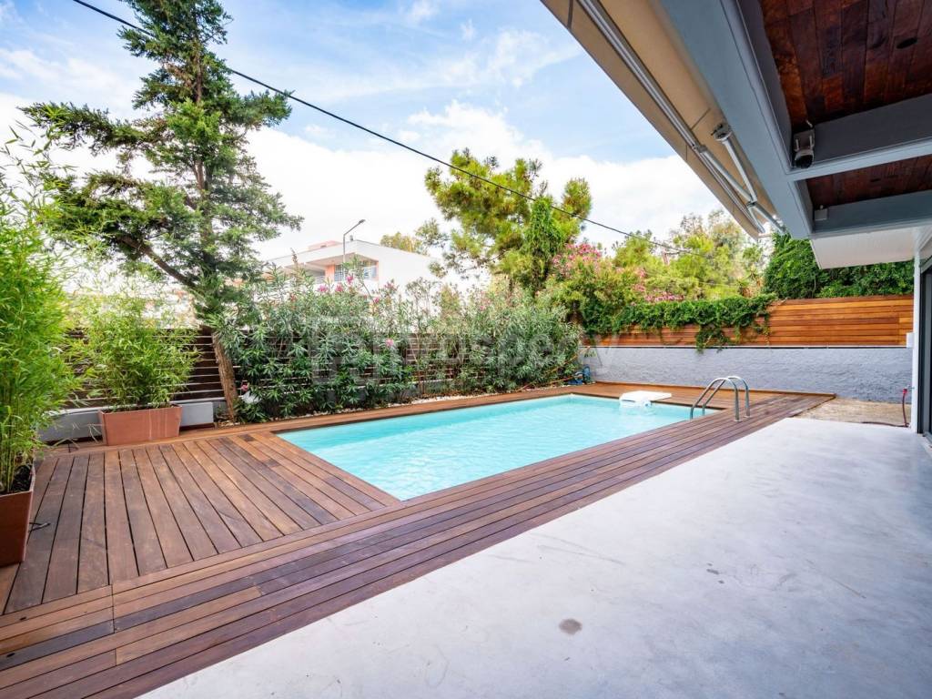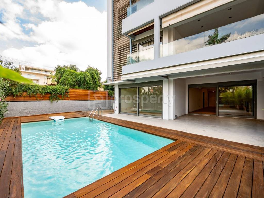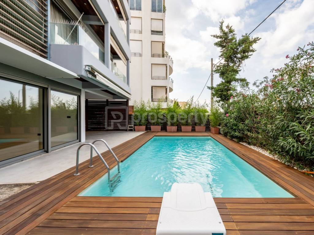 This luxurious maisonette, located near the center of Glyfada, offers an exceptional combination of modern design and comfort. On the ground level, the open-plan living and dining area impresses with its spacious lounge and a cozy fireplace that adds atmosphere and elegance. The fully equipped kitchen is functional and contemporary. Two spacious bedrooms complete this level, with one featuring an en suite bathroom for ultimate comfort, as well as an additional bathroom for shared use. In the basement, which is naturally lit thanks to the skylights, there are two more bedrooms, a bathroom, and a large studio space, ideal for multiple uses. The basement rooms provide a pleasant stay throughout the day. The maisonette is equipped with an autonomous natural gas boiler for heating and hot water, air conditioning in all areas, security cameras, and an alarm system for enhanced protection. The floors throughout are made of wooden parquet, while the bathrooms feature tiles, adding elegance and warmth. The outdoor environment is enhanced by a private garden of 155 sq.m. and exclusive use of a 25 sq.m. swimming pool, while it also includes an underground parking space, offering complete comfort and convenience for movement. https://marketplace.theprosperty.com/listings/6640 ☎️ 210 6812500