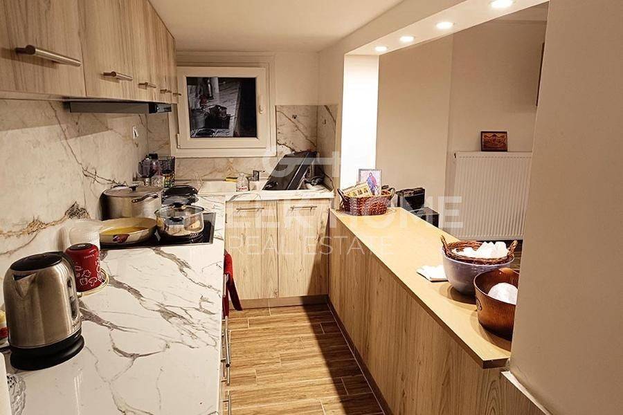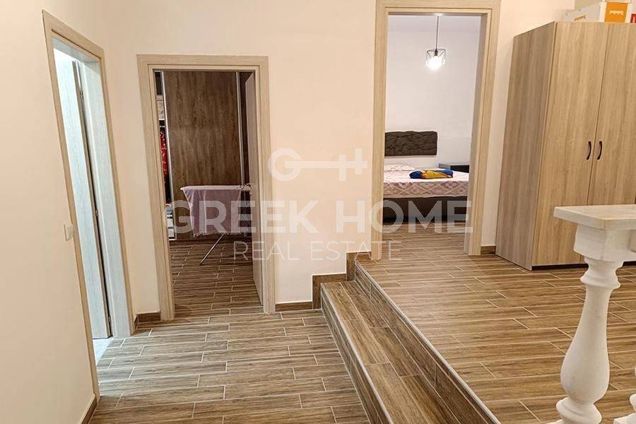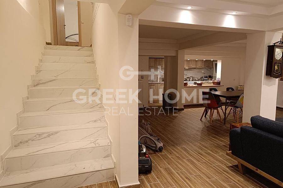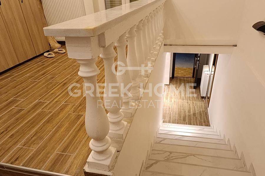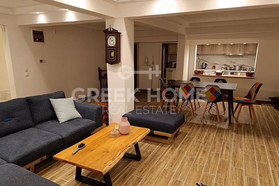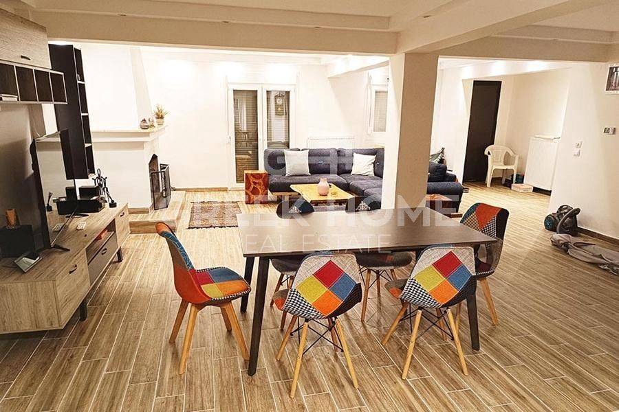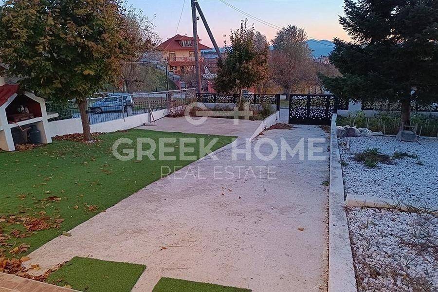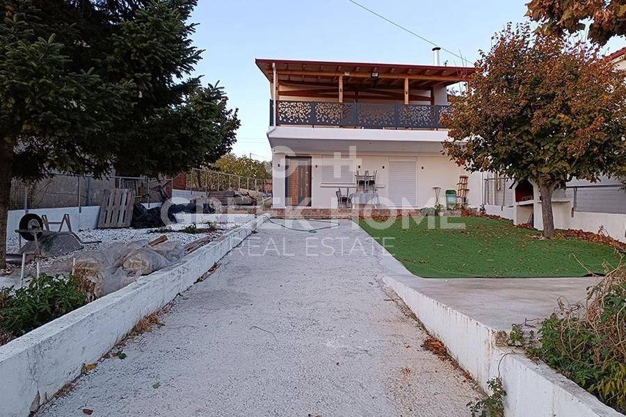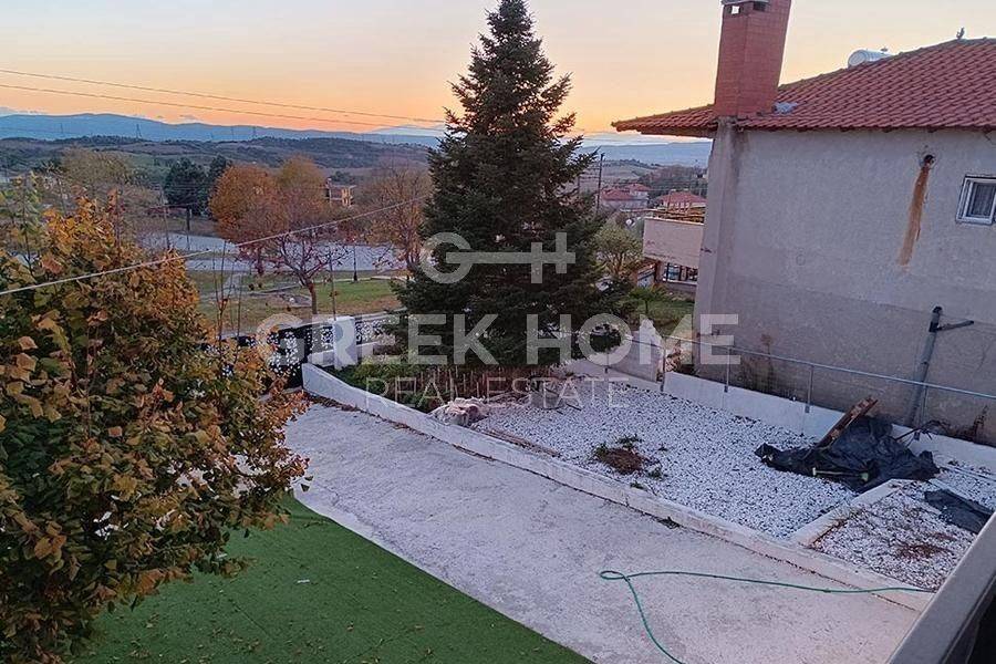 Lagkadas, Hrysavgi - Detached House 140sqm plot 470sqm, fully furnished, bedrooms 3, levels 2, ground floor - 1st, fully renovated, year built 1992, energy class D, living room, hall, kitchen, bathroom, wc, heating type: autonomous (oil), air condition, parking open space, quiet, dual aspect apartment, luminous, unobstructed view, frontage, storage space, solar heater, fireplace, balconies, balcony 40sqm, garden, built in appliances, aluminum frames, double glazed windows, door screen, ceramic tiles floors, secure door, alarm, surveillance cameras, internal staircase, pets allowed, southern orientation.