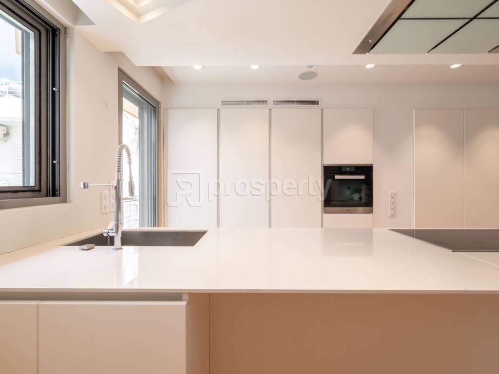 In an excellent location in Nea Filothei (Girokomeio), right next to Palaio Psychiko and with easy access to the central districts of Ampelokipoi, a bright and airy 138 sq.m. apartment is available for sale on an elevated 1st floor of a well-maintained small building. The property offers open views towards Mount Hymettus and combines high aesthetics, functionality, and tranquility in one of Athens' most sought-after neighborhoods. The full renovation, completed in 2016, was carried out with premium materials and technological upgrades. The reception area is configured as an open plan living and dining space, while the kitchen stands out as a centerpiece: a Veneta Cucine kitchen, entirely made of lacquer, with a high-end Italian Lapitec countertop and built-in Miele appliances — including induction cooktop, extractor hood that syncs automatically with the stove, and pyrolytic oven. The apartment features 3 bedrooms and 2 full bathrooms. Both bathrooms (one adjacent to the master bedroom) are equipped with Corian sinks — a material that is highly durable, non-porous, seamless to the touch, and exceptionally easy to clean. A built-in sound system is installed in the kitchen, bathrooms, and master bedroom, with a central Denon amplifier. The electrical system is of industrial-grade specifications, and there are Ethernet data ports throughout the home. The interior doors are by Golden Door, offering exceptional quality and design. Heating is autonomous via natural gas. Additional features include new aluminum energy-efficient window frames with double glazing, inverter A/C units, security door, solar water heater, and built-in wardrobes with interior lighting. A storage room is also included, which can alternatively be used as a walk-in closet. The building does not have an elevator and parking.