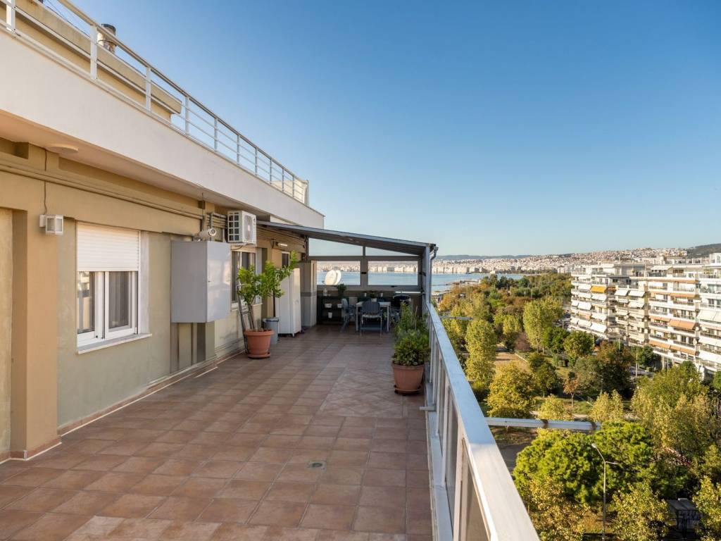 Unique privacy in front of the sun and the sea with unobstructed 360 degree views characterize this penthouse, which is privilegedly located in front of the award-winning coastal front of Thessaloniki. The property includes a spacious and bright living room with large windows, spacious separate kitchen with smart storage, 3 bedrooms and 2 bathrooms. The large and peripheral terrace of 155 sq.m. offers moments of enjoyment with unique views, both to the park and of course to the endless blue of the Thermaikos Gulf. The apartment has autonomous gas heating. The Energy Performance Certificate is currently being issued. Location: It is an urban, safe and quiet area mainly occupied by residences and shops of all kinds, served by many bus lines and located very close to the Metro line. Schools, restaurants, many super markets as well as various spots cover the needs of its residents. Unique Features: The area is covered by 3 main avenues as well as direct access to Nea Paralia of Thessaloniki. Accessibility: The area is located 10 min from the heart of Thessaloniki served by many bus lines in all directions and by the Metro line. Investment Opportunity: This area is characterized by safety, quietness, proximity to the city center (10 min.) with direct access to Universities, I.I.E.C., Public Services, Hospitals, Schools and by good transport.