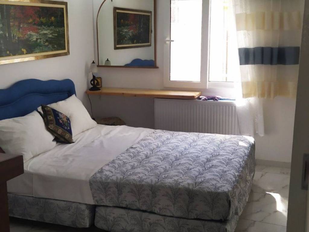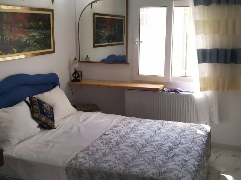 It is built right in the heart of the city center of Volos next to the Town hall, the opera house and the Administrative Court. Easy for you to find a parking place located at the beginning of Ermou Street which is the main street of commerce life. Τhe house is ten steps from all bus stops - with very frequent bus connection to all destinations. 100 meters from the sea-front and 5 minutes’ walk to the port. It is a very quiet detached house (not block of flats) fully renovated in 2010 to provide an ideal place with every comfort. As you enter the safety doors to the interior of the house you will see the cozy air-conditioned living room equipped with a flat screen smart TV, WI-FI Internet, decorated in a unique style, making you feel at home. In the fully equipped kitchen you can enjoy and prepare your meals as all comforts are provided. The house has 1 beautifully decorated bedroom with comfortable double – bed and brand new mattress. Also there is a double sofa-bed in the living room. Finally, there is a back yard in the house. There are studying facilities with a desk and a library. 1 air-condition
