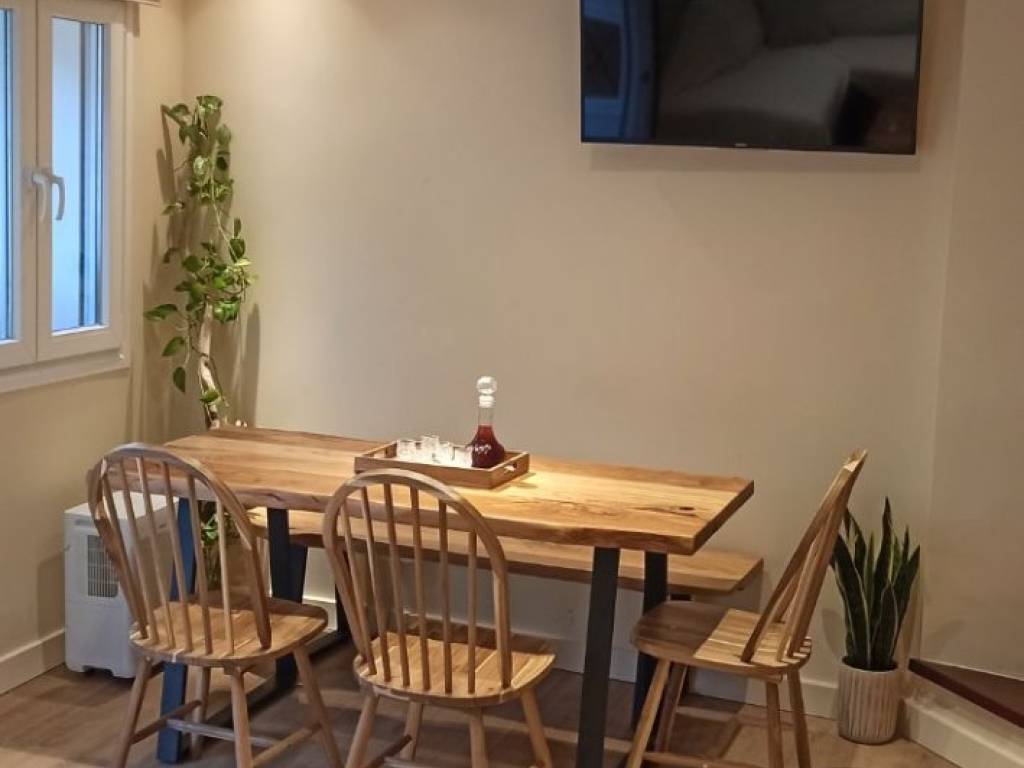 Si compone di cucina, soggiorno, salotto e WC al piano terra. Il primo piano (A) è composto da 2 camere da letto e un bagno. È completamente arredato e dispone di una nuova cucina, frigorifero, lavatrice/asciugatrice, TV, 3 A/C, scaldabagno, telecamera esterna, starlink. È disponibile con un terreno ausiliario di 15 mq dove viene utilizzato come spazio di stoccaggio (serbatoio da 2.000 lt, serbatoio a pressione, pozzo nero). L'esterno è stato trasformato in un guscio (facciata termica), ha nuovi telai e porte in alluminio. Questa casa indipendente è stata completamente ristrutturata e completata nel 2025 con cura e tanto amore !!!! SENZA DIRITTI IMMOBILIARI