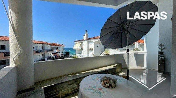 Apartment For sale, floor: Semi-basement, 1st (2 Levels), in Kassandra - Skala Fourkas. The Apartment is 81 sq.m.. It consists of: 3 bedrooms, 2 bathrooms, 1 kitchens, 1 living rooms and it also has 1 parkings (1 Open). The property was built in 1992, Air conditioning are also available, it has Alluminum frames with Double glazed windows, the energy certificate is: F and its floors are Tiles. The property's status is: Good condition, it is close to Sea, Seaside, Church, Super Market, 10 Km from city, 20 Km from seaside, 10 Km from hospital/medical center, 95 Km from airport, it has Sea view and it has SouthWest orientation. The Apartment is Whole floor, Painted, Furnished, On Corner, Bright, Seaside, it is suitable for Holiday home, Short term Rentals and it also has the following unique features and advantages: Window Screens, Tents, Electric Appliances, Storage, Garden, BBQ, Grass, Trees, Pets allowed, Quiet neighborhood. Price: €250.000. LASPAS Real Estate Brokerage, contact phone: 2374044191, 6945101582, email: sales@laspasrealestate.com, website: