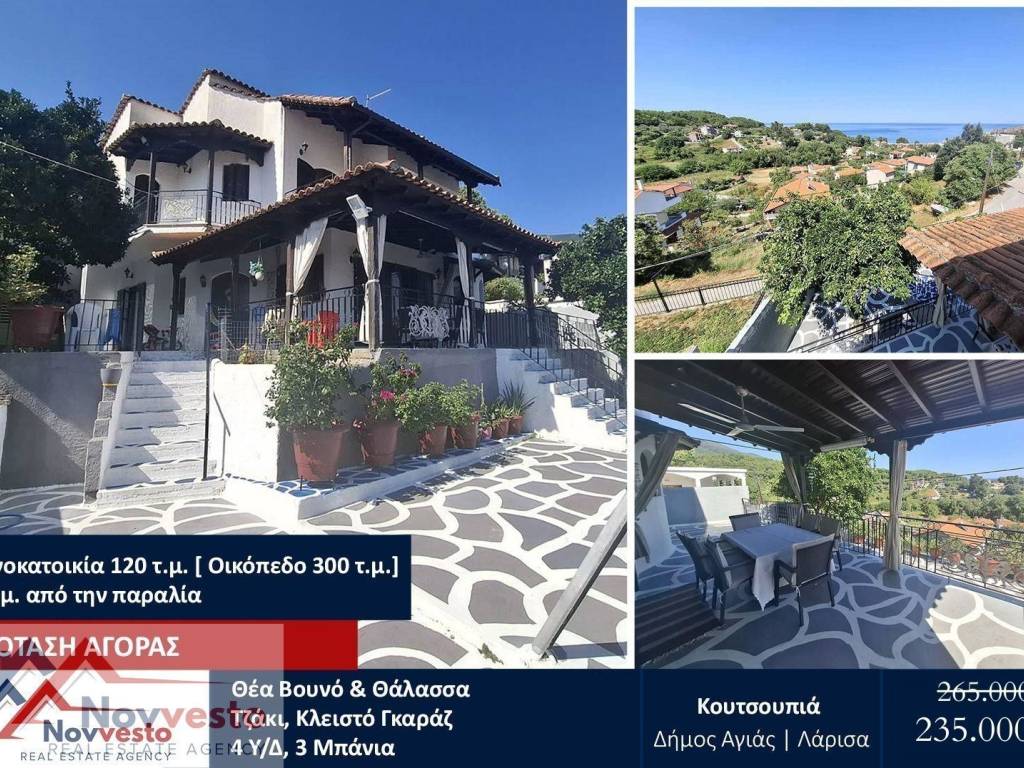 For Sale – 2-Storey Detached House with Sea & Mountain View, just 300 m from the Beach Location: Koutsoupia | Agia Municipality | Larissa The Property In the heart of beautiful Koutsoupia, just 300 meters from the beach, this 120 sq.m. two-storey detached house offers a rare combination of functionality, natural beauty, and privacy — ideal as a permanent residence or a vacation home. The house sits on a 300 sq.m. plot and features a two-level courtyard, covered verandas with traditional tiled roofs, and a closed garage. The open views to the Aegean Sea and the lush green slopes of Mount Kissavos create a tranquil and scenic setting that is hard to find. Its smart interior layout is perfectly suited for both private use and guest accommodation. ️ Layout Ground Floor A welcoming and functional living space — perfect for everyday life or entertaining guests. ▪️ Spacious open-plan living room with kitchen and a fireplace ▪️ 1 bedroom ▪️ 1 bathroom Direct access to the courtyard connects indoor and outdoor living seamlessly. First Floor The upper level houses the private sleeping quarters of the home, offering a peaceful retreat. ▪️ 3 bedrooms in total ▪️ 2 bathrooms – one of which is en suite to the master bedroom ▪️ Large verandas with panoramic views of the sea and the mountains ✨ Additional Features ✅ Closed garage ✅ Wooden window frames ✅ Two-level yard with covered verandas ✅ Sea & mountain views ✅ Oil heating system Year of construction: 1990 ️ Where the Sea Meets the Mountains In a peaceful, undiscovered, and steadily developing seaside location, this home is ready to host the memories you’ll cherish forever. Its location makes it an ideal choice for personal use or touristic investment (e.g. Airbnb). The Location – Koutsoupia, Larissa Koutsoupia is a serene coastal village that perfectly balances tourism with traditional charm. Its friendly beach offers a mix of sand and pebbles, organized facilities, beach bars, and traditional taverns. Close by, you’ll also find many unorganized, more secluded beaches — ideal for those who prefer a deeper connection with nature. The easy beach access, along with proximity to natural and cultural attractions, makes this property an excellent choice for a holiday home or investment. Distances Stomio Health Center: 12 km City of Larissa: 60 km Thessaloniki Airport (SKG): 166 km For more information, feel free to contact us. We’ll be happy to assist you! Novvesto Real Estate – Odysseas Grammenos Real Estate Office Email: odg@novvesto.gr