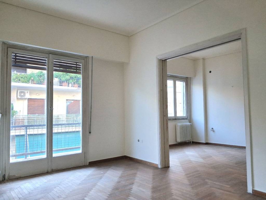 A very bright vintage apartment of 86 sq.m. on a high 1st floor in a quiet street close to all facilities and means of transport. It consists of a high ceilings living room with nice wooden flooring, a separate kitchen, 2 bedrooms, a utility room (could be a 2nd bathroom, laundry, storage) and a full bathroom. The apartment is in livable condition but in need of an update. In the same building 4 apartments 86-97 sq.m. are available for immediate sale with papers in order. At the viewing of the property it is necessary to provide a form of identification (i.d or passport) accordingly to law 4072/2012.