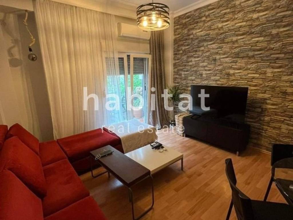 It is furnished, equipped with electrical appliances (bed, coffee table, wardrobe, kitchen table, sofa, dishwasher, built-in oven, refrigerator), constructed in 1960, close to School, Metro Station, OASTH, supermarket and offers a view of the city, synthetic frames with double glazing, armored door, air conditioning, energy class D.
