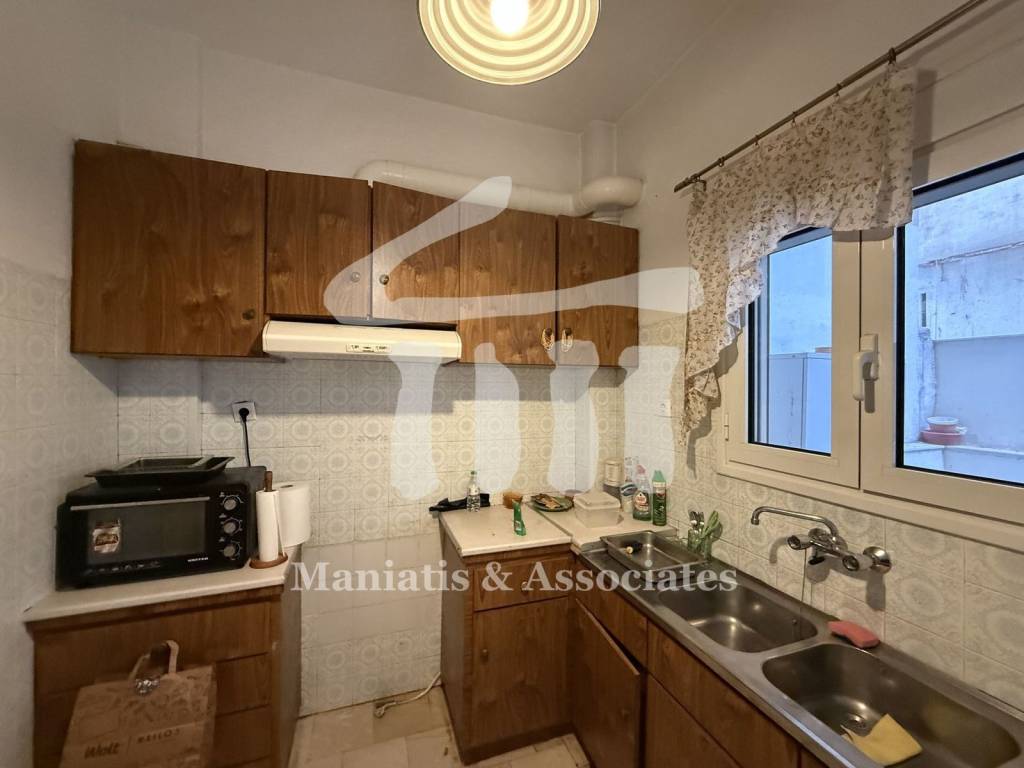 For Sale, Piraeus - Center - Pasalimani: Apartment 70 sq.m., 1st floor, built in 1976, partially renovated in 2020. It consists of a hall, living room, independent kitchen with access to a private, internal courtyard, 2 bedrooms with fitted wardrobes and 1 renovated bathroom with shower and window to the skylight. It has an elevator, security door, aluminum frames with double glazing, marble and wooden floors, 2 toyotomi air conditioners and a balcony with awnings on the front aspect. It is front-facing, airy and bright, in a prime location, just above Pasalimani, offering direct access to the market and transportation. PRICE: €200,000 Maniatis & Associates, Contact Phone: 2104190703, email: info@e-mesitis.com