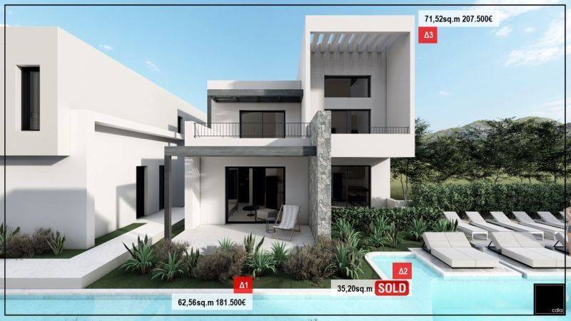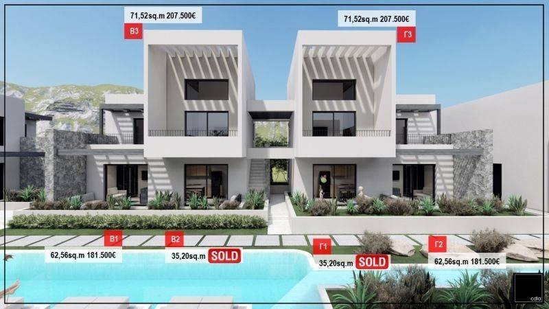 It consists of 20 modern residences, each with its own style and functional layout. The houses have comfortable interiors, terraces overlooking the garden or the sea, while their architecture follows the philosophy of harmony with the natural environment. Their design emphasizes brightness and relaxation, creating ideal conditions for a comfortable stay throughout the summer.