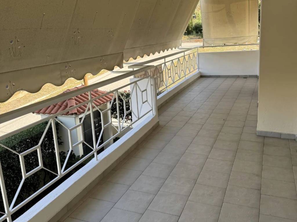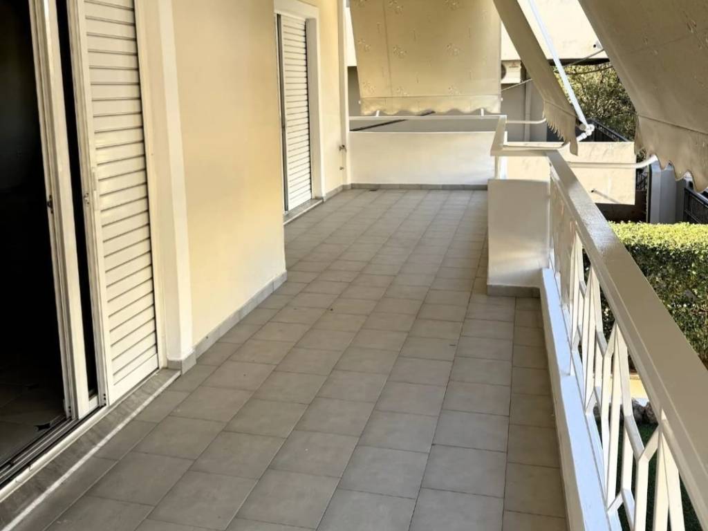 οροφοδιαμέρισμα 136m²1ου ορόφου, διαμπερές, σε άριστη κατάσταση. Αποτελείται από :ένα (1) μεγάλο σαλόνι-τραπεζαρία με τζάκι, δύο (2) μεγάλαμπαλκόνια το ένα (1) εμπρός με τέντες και ένα (1) πίσω, ένα (1) μικρό μπαλκόνι έξω από την κουζίνα, τρία (3) υπνοδωμάτια με μεγάλες ντουλάπες, μία (1) ντουλάπα-λινοθήκη στον διάδρομο, ένα (1) λουτρό,ένα (1) WC με ντουλάπα για πλυντήριο και στεγνωτήριο ρούχων και μία (1) αποθήκη, πόρτα ασφαλείας, πατώματα με πλακάκι, σήτες, συναγερμός, δαγκάνες και πύροι ασφαλείας σε όλα τα κουφώματααλουμινίου, σιδερένια κάγκελα στο παράθυρο και στη πόρτα της κουζίνας, οπτική ίνα (Fiber) για internet, θερμοσίφωνας,αυτόνομη θέρμανση (πετρέλαιο), και ηλιακός θερμοσίφωνας στο δώμα.Ανελκυστήρας. Στο ισόγειο (2) θέσεις παρκινγκ ένα κλειστό 17 m² και έναανοικτό, σε κλειστό χώρο.Στο υπόγειο (1) αποθήκη 14 m².Λίγα κοινόχρηστα. Όχι κατοικίδια.