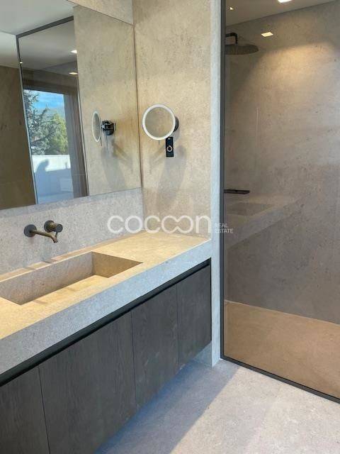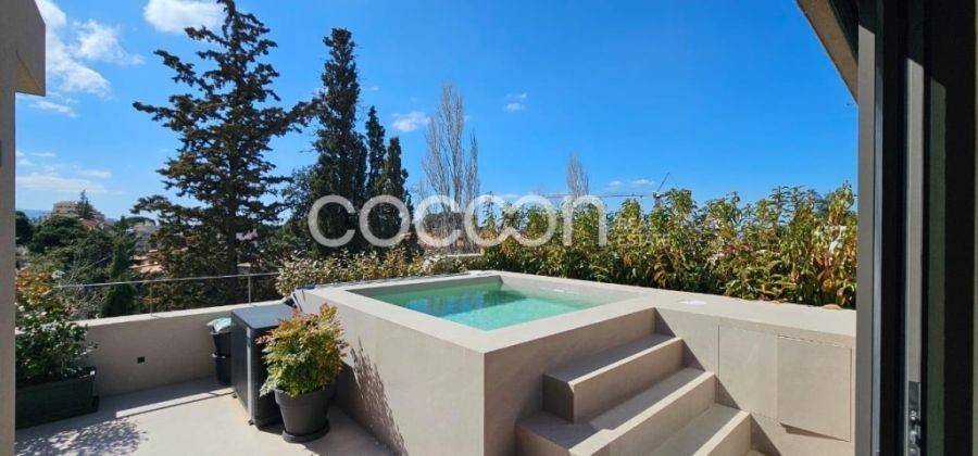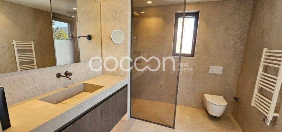 Ενοικιάζεται πολυτελής νεόδμητη (2025) μεζονέτα 271 τ.μ. σε συγκρότημα δύο πολυκατοικιών στην Κηφισιά, πλησίον πλατείας Κεφαλαρίου σε εξαιρετικό καταπράσινο οικόπεδο διπλά στο ρέμα του Κοκκιναρά. Η μεζονέτα εκτείνεται στα επίπεδα Β’ & Γ’ ορόφου, 164 και 107 τ.μ. αντιστοίχως, με χώρο υποδοχής, γκαρνταρόμπα, καθιστικό, τζάκι, κουζίνα, wc, υ/δ με ιδιωτικό μπάνιο και ένα επιπλέον υ/δ στον Γ' όροφο και 2 υ/δ (master +1) με ιδιωτικό μπάνιο, γραφείο και βεράντες (δώματα αποκλειστικής χρήσης 124 τ.μ.) με υδρομασάζ στον Β’ όροφο. Διαθέτει βοηθητικό χώρο στο υπόγειο 68 τ.μ. με playroom, υ/δ προσωπικού, μπάνιο, laundry room, αποθήκη κάτω από το κεντρικό κλιμακοστάσιο και δύο θέσεις στάθμευσης με ρευματοδότες για φόρτιση ηλεκτρικού οχήματος. Είναι ενεργειακής κλάσης Α, με εξωτερική θερμοπρόσοψη, αυτόνομο σύστημα ενδοδαπέδιας θέρμανσης δύο ζωνών (ανά όροφο) με λέβητα φυσικού αερίου, κλιματισμός με εσωτερικές μονάδες ψευδοροφής, ηχομόνωση στο δάπεδο και στους διαχωριστικούς τοίχους υπνοδωματίων και μπάνιων.