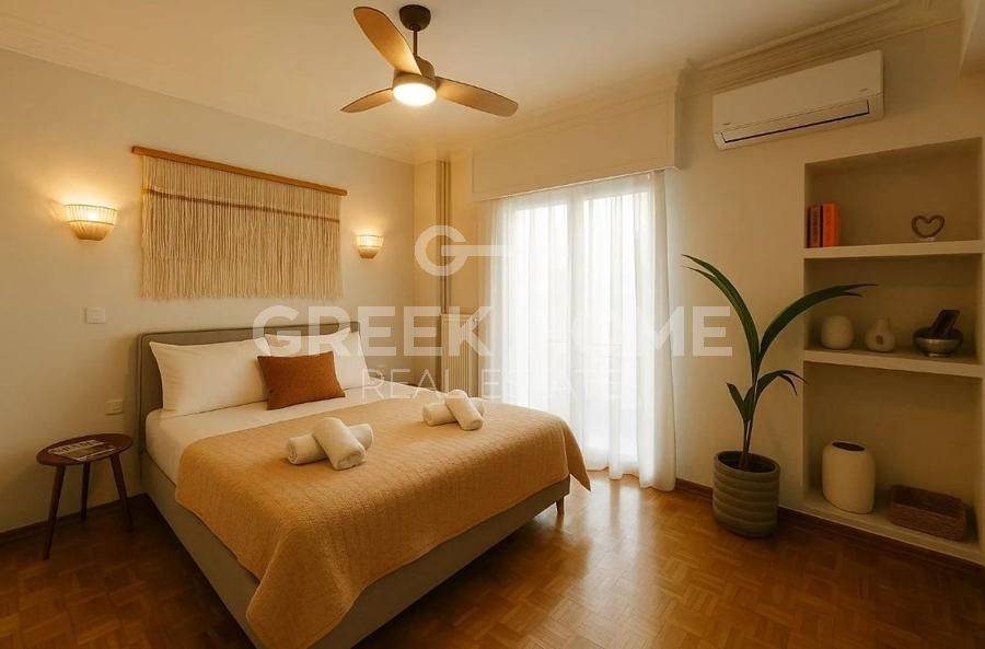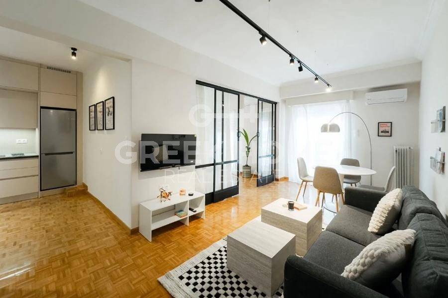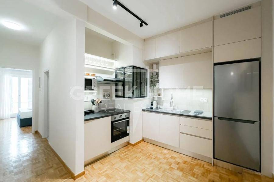 Pangrati, Varnava - Apartment 77sqm fully furnished, bedrooms 2, 2nd, fully renovated, year built 1978, renovation year 2025, energy class D, living room, hall, kitchen, bathroom, wc, heating type: central (oil), air condition, painted, solar heater, balconies, elevator, loft storage, door screen, wood floors, secure door.