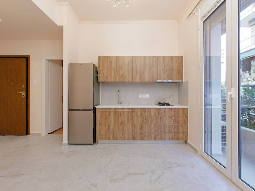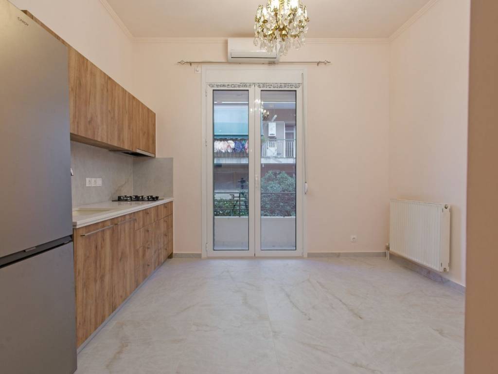 Excellent 40 sq.m. Apartment on the 1st Floor, Kypseli Located in a distinctive interwar-era building on Sporadon Street in Kypseli, this 40 sq.m. apartment (1st floor, no elevator) is within walking distance of Agios Georgios Square and the Fokionos Negri pedestrian street, in a lively area with modern cafés and a vibrant market. The apartment was fully renovated in September 2025, making the new tenant the very first to live in it. It features individual natural gas heating, air conditioning, washing machine, kitchen with stovetop and refrigerator, as well as a security door and aluminum window frames with double glazing.