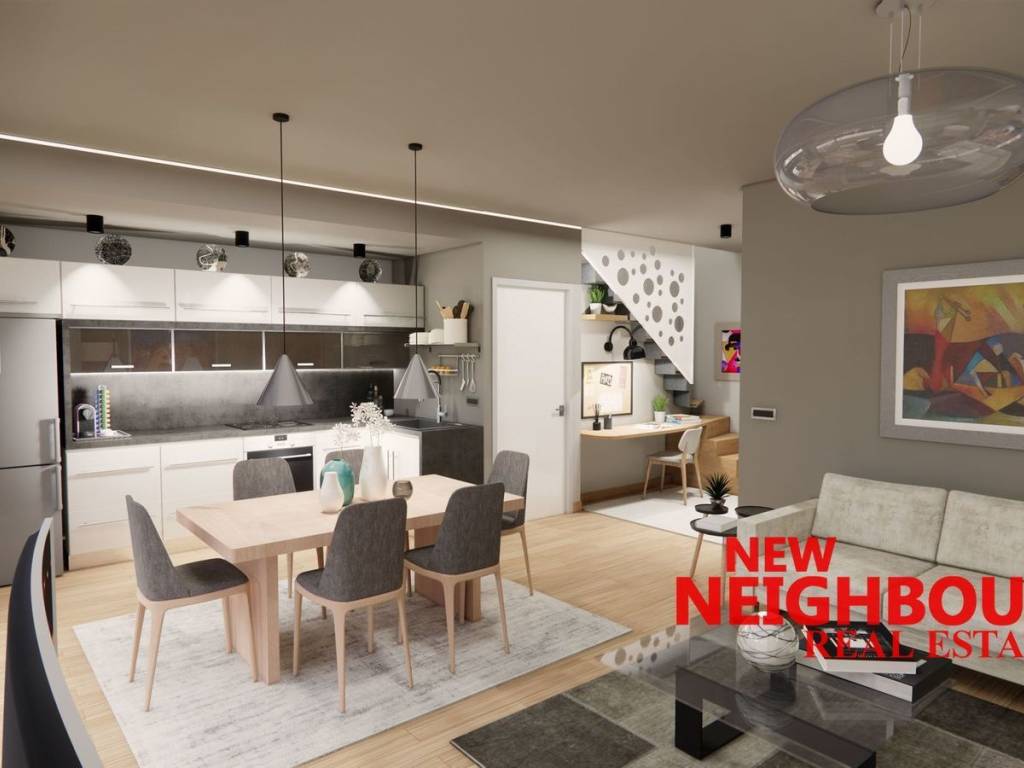 For sale, under construction, one-storey maisonette 109sq.m, (68sq.m + 41sq.m), 4th floor - attic in Melissia and will be completed at the end of "26. It has a living room with a single kitchen, 3 bedrooms and two bathrooms. It has underfloor heating with a heat pump, air conditioning, electric water heater, photovoltaic panels for the production of electric current, energy-efficient frames, while the entire building is surrounded by a thermal facade and is energy class A+. It also has two parking spaces and a storage room in the basement. It is a very beautiful house, high quality construction with an exemplary layout. It is located in a quiet neighborhood a stone's throw from the square of Agios Georgios in Melissia. Price 540,000 euros Code: 21362