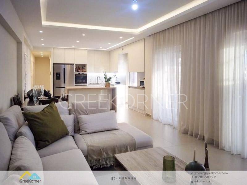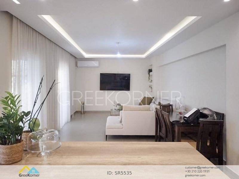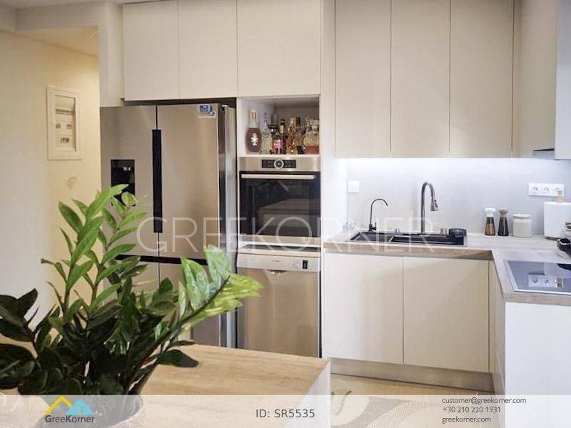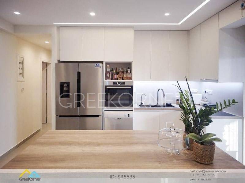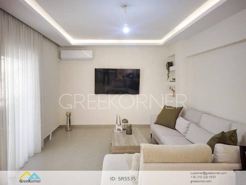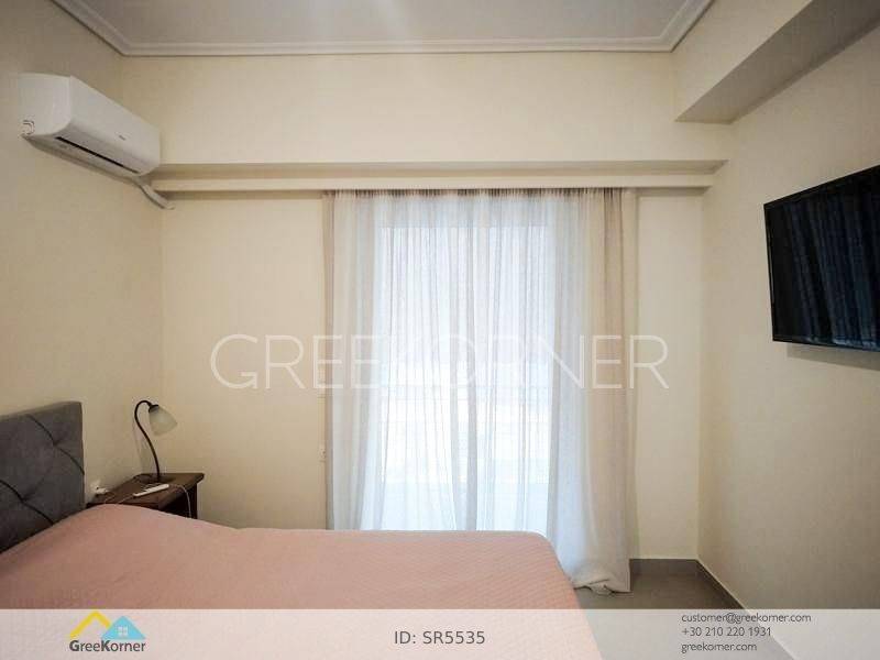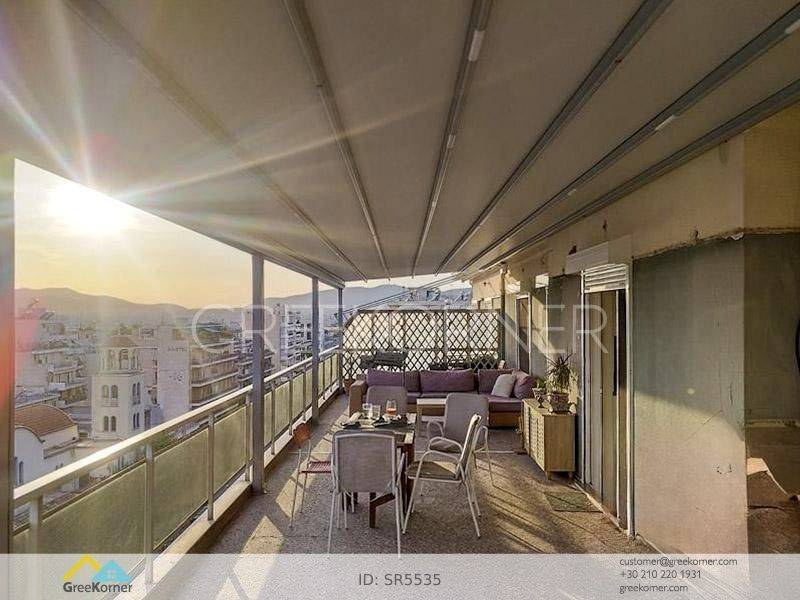 Kato Patisia - Apartment 100sqm bedrooms 2, levels 1, 5th, fully renovated, year built 1984, renovation year 2025, energy class C, living room, hall, kitchen, bathroom, heating type: autonomous (air condition), quiet, dual aspect apartment, luminous, corner, unobstructed view, frontage, painted, drop ceiling, electric roller shutters, solar heater, boiler, external thermal insulation, balconies, large balconies, balcony 60sqm, tents, elevator, built in appliances, aluminum frames, double glazed windows, door screen, ceramic tiles floors, night electricity discount rate, secure door, video doorbell, cloakroom, internet, pets allowed, within city plan, residential zone, access from asphalt, close to school (up to 200m), close to national road (up to 500m), close to metro/train (up to 100m), close to super market (up to 20m).