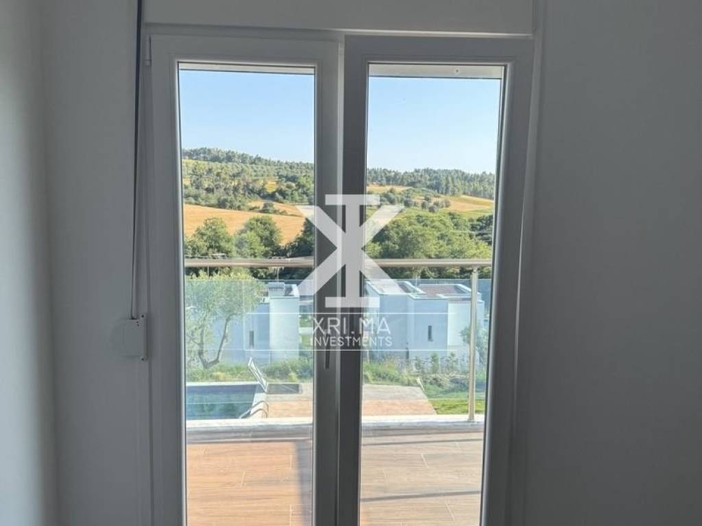 Property Code: 1-1128 - Maisonette FOR SALE in Kassandra Sani for € 325.000 . This 80.00 sq. m. Maisonette consists of 2 levels and features 3 Bedrooms, Livingroom, Kitchen, bathroom and a WC. The property also boasts Heating system: Air conditioner, tiled floor, view of the Open horizon, Window frames: Aluminium, Armourplated door, garden, swimming pool, A/C, insect screens, double-glazed windows, solar-powered water heater, open space, internal staircase. The building was constructed in 2024 . Building Energy Rating: B