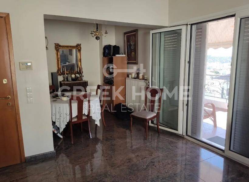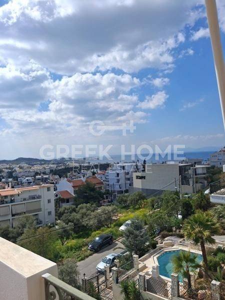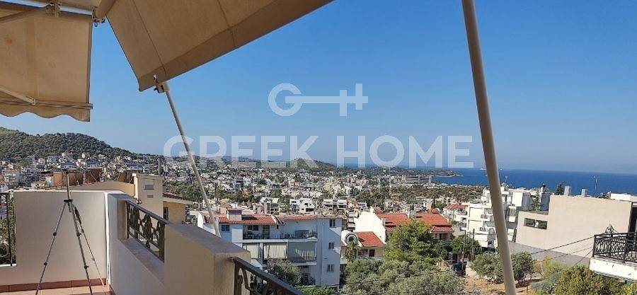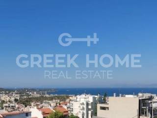 Voula, Exochi - Apartment 76sqm plot 476sqm, bedrooms 2, 3rd, penthouse, excellent condition, year built 1998, energy class D, living room, hall, kitchen, wc, heating type: autonomous (oil), quiet, dual aspect apartment, luminous, sea view, frontage, painted, storage space 9sqm, solar heater, large balconies, tents, elevator, garden, thermal shut-off frames, double glazed windows, door screen, night electricity discount rate, secure door, internet.