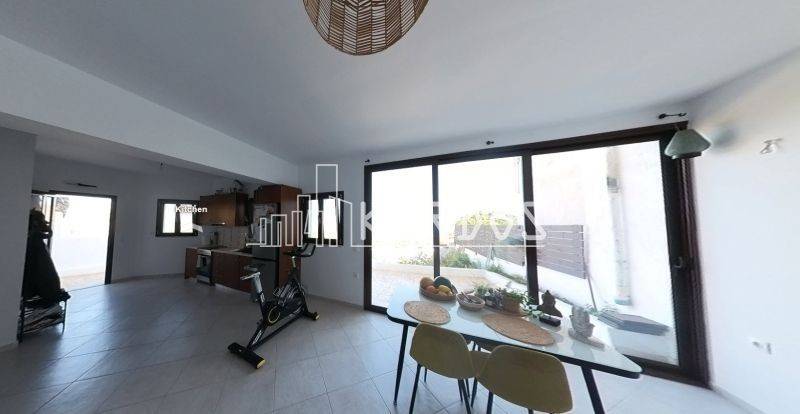 Στο ισόγειο συναντάμε ένα οροφοδιαμέρισμα 100 τ.μ. που αποτελείται από σαλοκουζίνα, 2 υπνοδωμάτια, ένα μπάνιο και μια αποθήκη που αποπερατώθηκε το 2013.