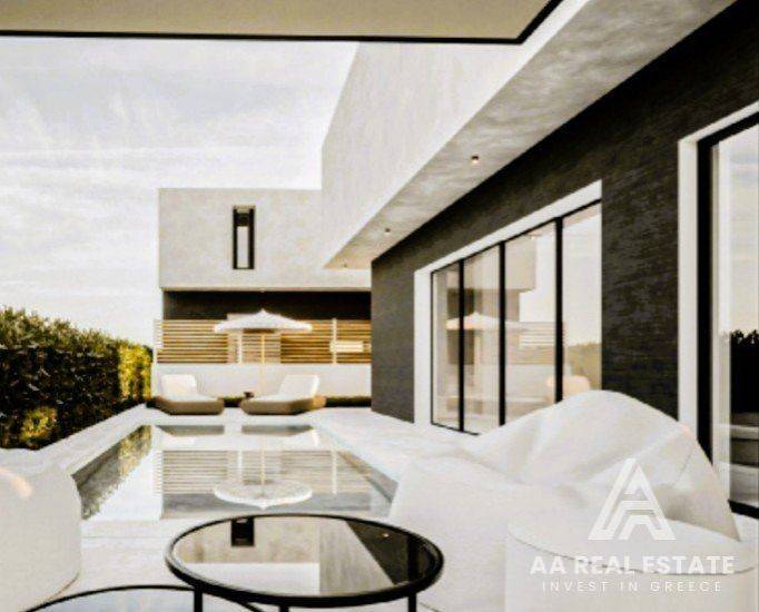 Dionysiou Beach (Chalkidiki) - FOR SALE under construction, excellent, luxurious, smart home, bright, maisonette of total area 130 sq.m. which is located on a plot of 100 sq.m. with parking space and private swimming pool. This is a complex of 4 maisonettes, for sale. Each maisonette consists of 2 levels, 3 bedrooms, living room, kitchen, 3 bathrooms and wc. It has individual underfloor heating, view, aluminum frames, tiled floors, armored door, built-in wardrobes, garden, alarm, screens, double glazing, opening, internal staircase. Estimated delivery time 4/2026. The distance from the sea is approximately 250 meters and from the airport 48 km Dionysiou Beach is one of the friendliest and quietest destinations in Halkidiki, with a beautiful beach, taverns and a family environment, offering the ideal balance between tranquility and immediate access to all amenities. The property is of excellent construction, modern aesthetics, in a very quiet neighborhood and is only 250 meters from the sea and 5 minutes from Nea Moudania. It is ideal for a holiday home, but also for a permanent residence. These residences are a unique investment opportunity, as they combine the excellent location with comfort and modern construction, which ensures quality living for their residents. distance from the beach 250, number of floors in the building 2, painted, terace, type of glass duble, land surface 100, energy class A+, inside settlement, country house, investment, floor heating, indoor lader, view, garden, frames aluminium, newly built, swimming pool, luxury home, security door, access asphalt, facade, insect screen, alarm, flooring type tile, garden type private garden, bright