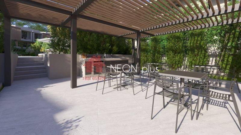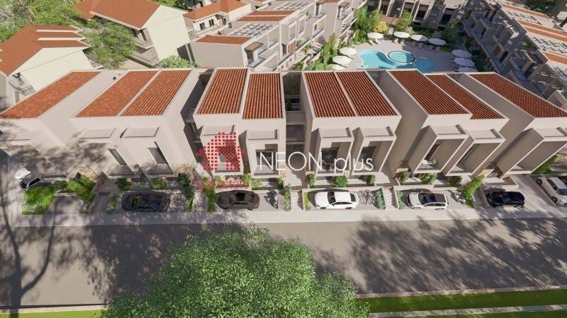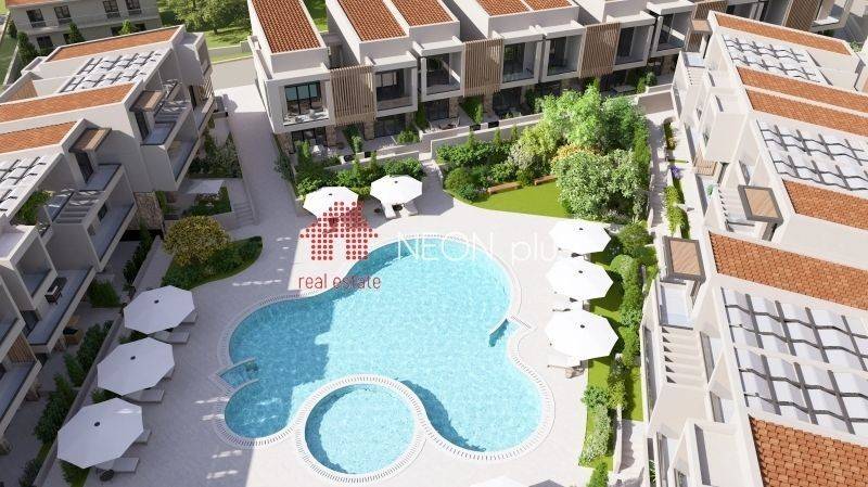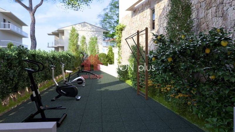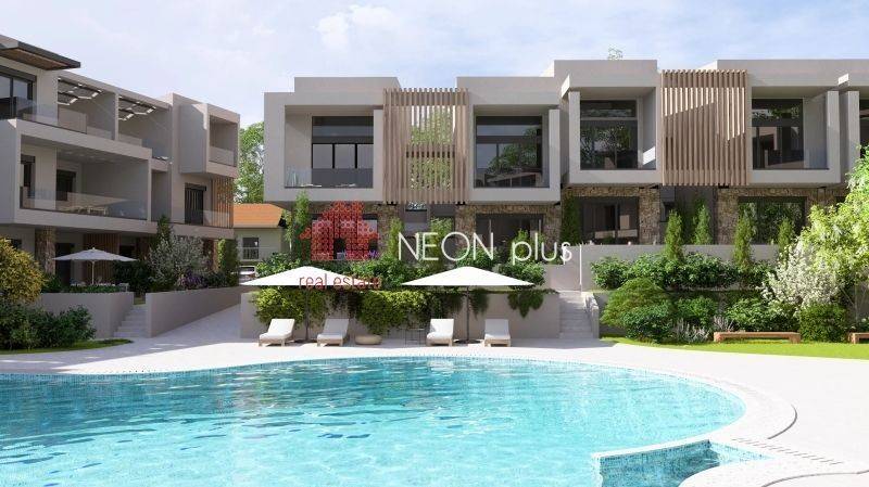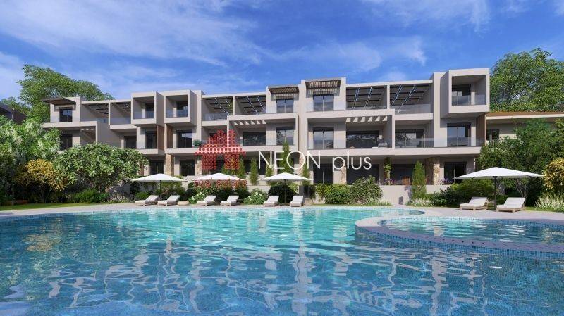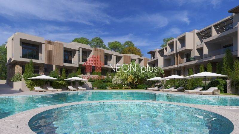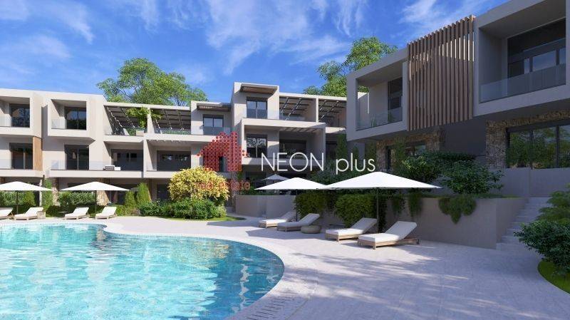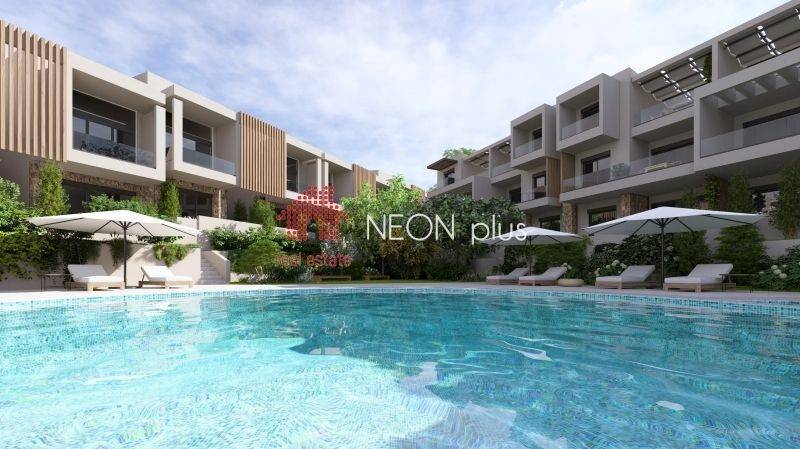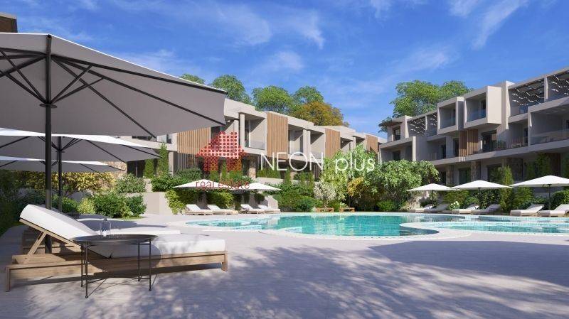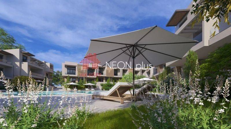 Property code: 1-499 - Kassandra Kallithea FOR SALE  an under construction first floor apartment of total 70 sq.m with one bedroom, living room-kitchen, bathroom and an attic with extra bedroom, bathroom and a balocony of 13 sq.m. Located in a luxury complex, with 2 communal swimming pools, playground, bbq and green area and also an outdoor gym for all owners, The apartment also has a smart home, system, electric shutters and also automatic watering for the garden. Available parking space with extra cost. Ready in June 2026. - Price: 210.000 €