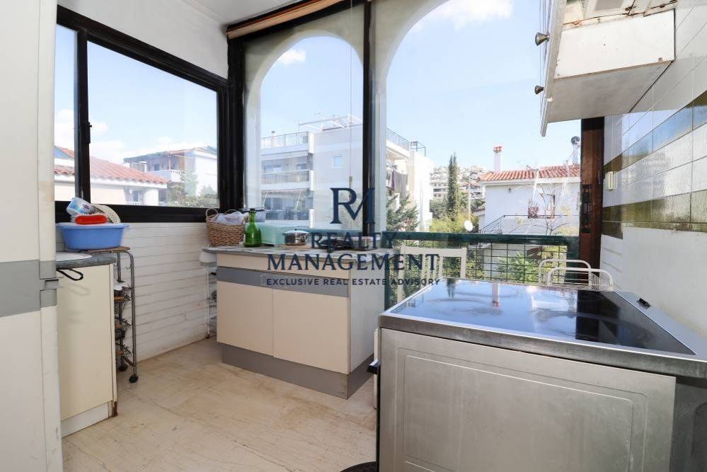 In a quiet, residential area, this bright front-facing 3rd-floor apartment enjoys open sea views and everyday comfort. The layout is practical and private: a generous living room, separate kitchen, two bedrooms (one with en-suite), a second bathroom, plus a handy storage room. Quality finishes include marble and wood flooring and aluminum window frames. Independent oil heating and a solar water heater keep running costs sensible year-round. Set in a well-kept 1980 building with elevator, the property also comes with a covered outdoor parking space—rare and valuable for the area. With effortless access to the Athenian Riviera, this home stands out for its natural light, dual orientation, and calm sense of privacy.