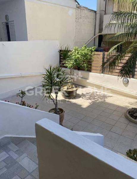 Iraklio (Iraklio), Estavromenos - Apartment 80sqm plot 120sqm, unfurnished, bedroom, ground floor, very good condition, year built 1985, energy class D, living room, hall, kitchen, bathroom, wc, heating type: no heating (air condition), quiet, luminous, unobstructed view, frontage, storage space, solar heater, balconies, loft storage, garden, aluminum frames, door screen, ceramic tiles floors, without common charges, secure door, pets allowed, western orientation, close to market (up to 100m).