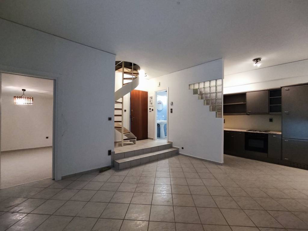διαμέρισμα σε δύο επίπεδα (2 ος-3 ος), με δύο εισόδους, αυτονομία θέρμανσης ανά επίπεδο και εσωτερική σκάλα. Στον 3 ο όροφο υπάρχει ένα μεγάλο υπνοδωμάτιο με ένα μπάνιο και walk- in closet. Εχει ξύλινο πάτωμα, μπαλκόνι και παράθυρο. Στον 2ο όροφο είναι το σαλόνι με ανοιχτή κουζίνα με εντοιχισμένες συσκευές (ψυγείο, κουζίνα), μπάνιο με ντουζιέρα και δεύτερο υπνοδωμάτιο ή γραφείο. Το σαλόνι έχει ένα πολύ μεγάλο παράθυρο και μπαλκονόπορτα και βγαίνει σε δική του αυλή. Είναι σε πολύ ήσυχο σημείο, κάτω από τον περιφερειακό Λυκαβηττού.