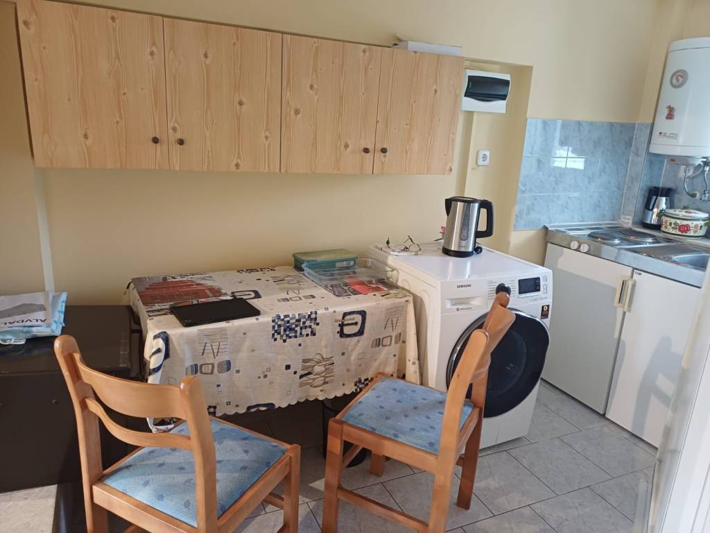 Description: A 28 sq.m. studio on the mezzanine floor, fully furnished, is available for rent. Features: Kitchen with electrical appliances: refrigerator, microwave, washing machine Air conditioning Security door Electric shutters with remote control Window screens Renovated / modernized in 2020 Rental Terms: No shared costs Ideal for one person Rent: €400/month No intermediaries / agents Pets are not allowed Contact: By phone only, from 17:00 to 22:00, at 6944191251