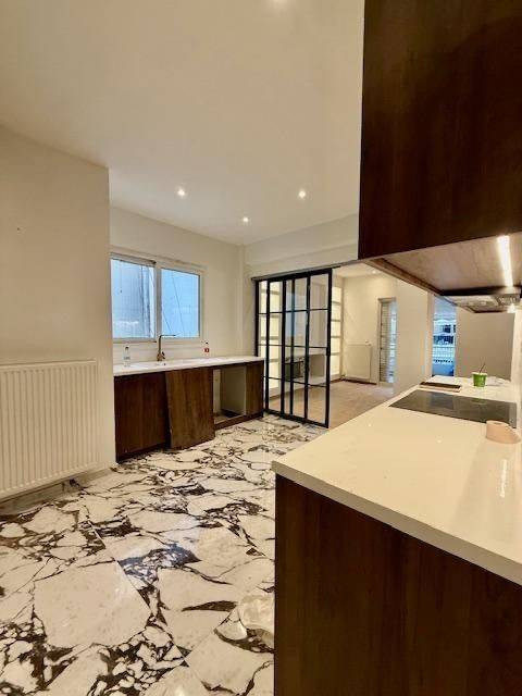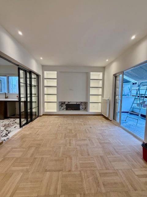 for rent 125sq.m penthouse on the 5th floor, fully renovated 2026, 2 master bedrooms (2 bathrooms), guest wc,kitchen equipped with stove, autonomous natural gas,wooden floors, a/c in all the rooms, 30sq.m veranda, lots of closet space, storage rent 3,000 euros for more information and viewing appointment contact 6937236000 jblue properties for more properties visit our website www.jblueproperties.com