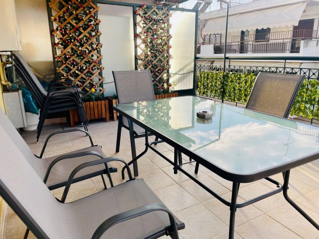 ΟΧΙ ΜΕΣΙΤΕΣ! ΔΕΝ ΕΠΙΤΡΕΠΟΝΤΑΙ ΚΑΤΟΙΚΙΔΙΑ! Από ιδιώτη - χωρίς μεσιτική αμοιβή! Ιδανικό για ζευγάρι, οικογένεια (χωρίς καρότσι, λόγου του μεγέθους του ασανσέρ που είναι μικρό), φοιτητές, εργαζόμενους. ΒΓΑΖΕΤΕ ΤΑ ΠΑΠΟΥΤΣΙΑ ΣΑΣ ΚΑΙ ΑΠΛΑ ΜΠΑΙΝΕΤΕ! ΤΑ ΡΟΥΧΑ ΣΑΣ ΜΗ ΞΕΧΑΣΕΤΕ :-) Ενοικιάζεται μερικός επιπλωμένο διαμέρισμα 90 τ.μ, κατασκευής του 1979 (ανακαινίστηκε το 2022), του 4. ορόφου (ρετιρέ) με δυο δωμάτια, σαλόνι, χωριστή κουζίνα με ηλεκτρικές συσκευές (απορροφητήρας, εστία, μικροκυμάτων, ψυγείο, πλυντήριο ρούχων), μπάνιο με μεγάλη ντουζιέρα, πατάρι και φανταστική μεγάλη βεράντα (περίπου 15 τ.μ.) Διατίθεται με θέρμανση ατομική φυσικού αερίου, κλιματιστικό, δάπεδα από πλακάκι, σίτες, τέντα στη βεράντα, ντουλάπες ρούχων, όπως και κρεβάτια (ένα μεγάλο 160x200μ και δύο μονά 90x200μ με καινούργια στρώματα). Έχει πολλούς αποθηκευτικούς χώρους, όπως φαίνονται στης φωτογραφίες. Βρίσκεται δίπλα σε super market (Discount/ Sklavenitis), φούρνο, όπως και κρεοπωλείο και βενζινάδικο - όλα περίπου στα 200μ. Η λαϊκή της τετάρτης είναι στα 500μ.