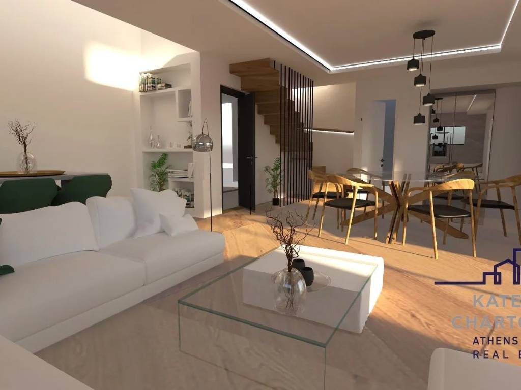 Maisonette For sale, floor: 5th, 6th (2 Levels), in Elliniko - Kato Sourmena. The Maisonette is 108 sq.m.. It consists of: 2 bedrooms, 1 bathrooms, 1 wc, 1 kitchens, 1 living rooms and it also has 1 parkings (1 Underground). The property was built in 2024. Its heating is Autonomous with Fan coil, Underfloor heating, Air conditioning, Solar water system are also available, it has Alluminum frames with Double glazed windows, the energy certificate is: A+. The property's status is: New development, Under construction, it has Sea, Openness view. The Maisonette is Penthouse, With Facade, Bright, Airy, Luxury and it also has the following unique features and advantages: Elevator, Storage, Internal staircase, Security door, CCTV, Security alarm, Porch. Price: €560.000. Katerina Chartoulari Real Estate, contact phone: 2108976105, email: info@chartoulari.gr, website: