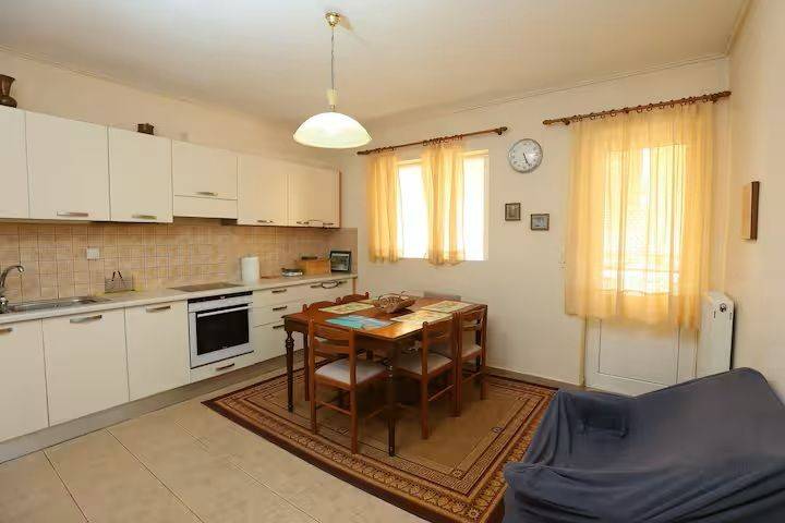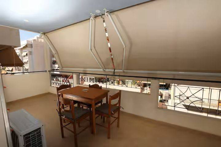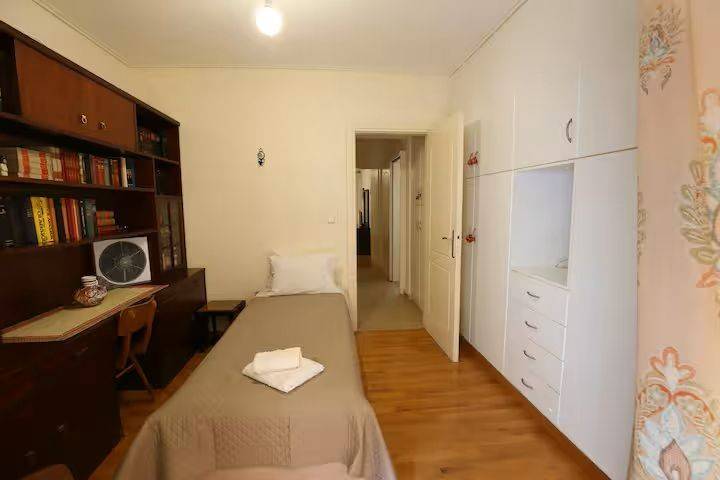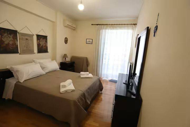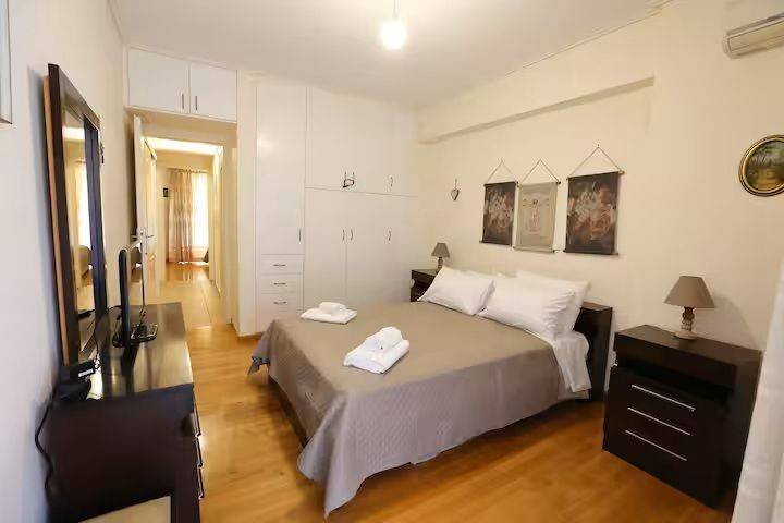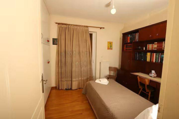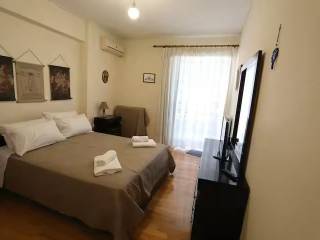 fourth floor apartment fully equipped fully furnished. large kitchen and large living room. interior. sunny. airy.large bedroom with double bed, new mattress. small bedroom with semi-double bed. plenty of closets. closets in both bedrooms. large bookcase. large composite in the living room. two tvs. wi-fi with excellent speed, cosmote connection, upgraded beginning of november 2025. laundry.verandas front and back. built-in kitchen. two refrigerators. fully equiped kitchen. living room with two armchairs and a three-seater sofa. rotonda with six chairs. ideal for two students. it is 150 meters from the starting point of bus 230 and from the starting point of bus 608. it is located between the central gate of the polytechnic university and the university center.300 meters from univercity and polytechnical campus . independent oil heating and air conditioning. quiet and peaceful neighborhood with a market of shops for every need. sososososososos > pets are not accepted in this particular apartment. ground floor driver's space for tenant's car. free parking area ground floor . special choice for students erasmus .
