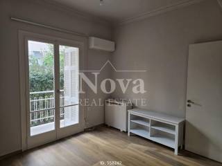 Nea Smyrni - Apartment 72sqm partially furnished, bedrooms 2, raised ground floor, partly renovated, year built 1970, renovation year 2010, energy class D, living room, kitchen, bathroom, wc, air condition, quiet, luminous, facade, aluminum frames, wood & tile floors, close to park (up to 100m), close to market (up to 100m), close to bus stop (up to 100m).