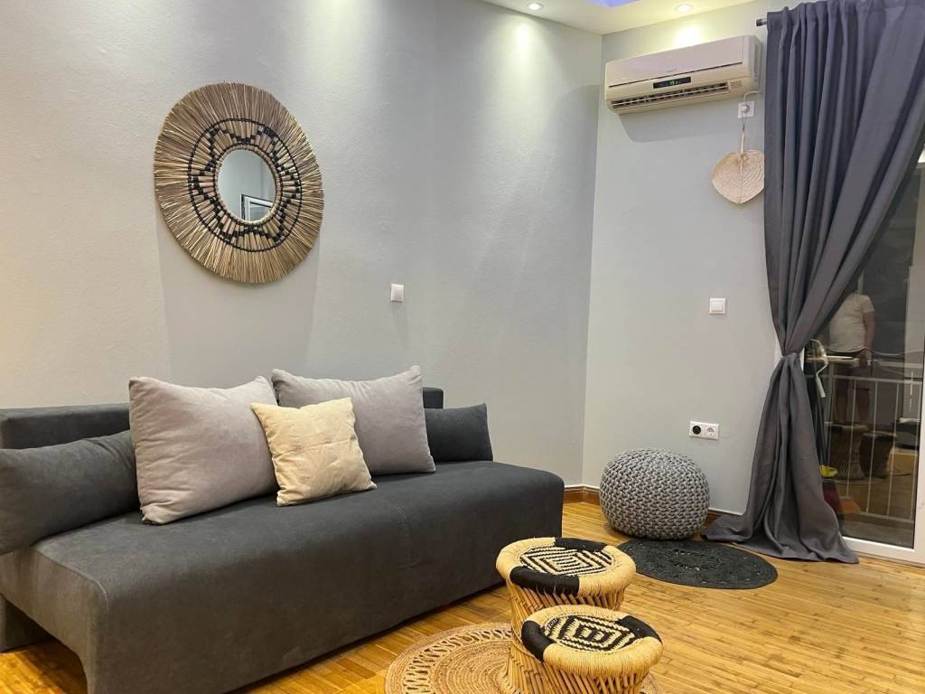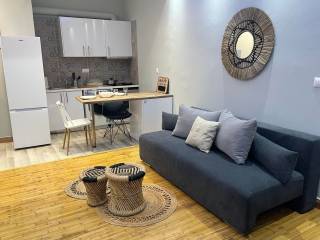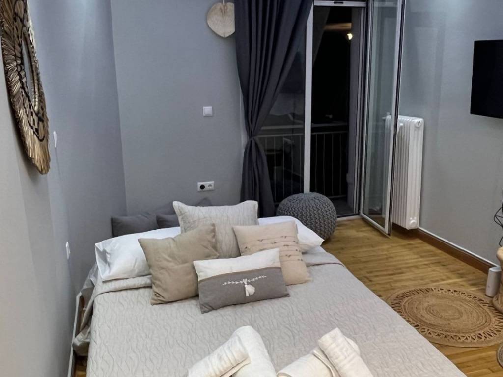 Renovated studio apartment in a central location, fully furnished, with appliances (washer-dryer, built-in electric stove - ceramic hobs, no frost refrigerator, coffee maker, toaster, kettle, iron, ironing board), functional layout with storage spaces. 500m from Nea Smyrni square, near Baknana and Aigaio tram stops, near supermarket, cafes, Nea Smyrni market, and Nea Smyrni grove, near Panteion University. Watch the video: https://www.veed.io/view/bf03749c-fe69-4e78-8fda-3ff49a8fc8be?panel=share