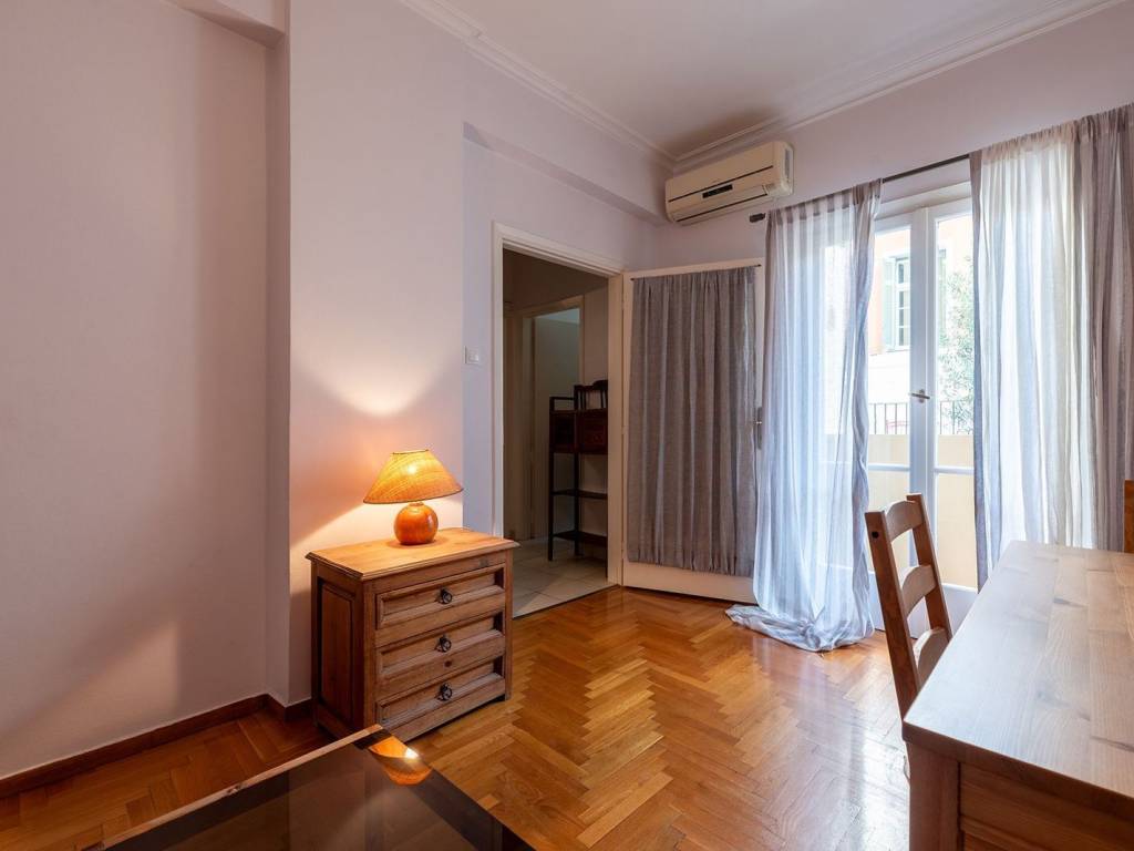 This is a quiet two-room apartment of 42 sqm, on a raised first floor in a central location in Exarchia, near Hippokratous. It stands out with its unique balcony, bright, from 1968 with a renovation in 2017. It consists of an entrance hall, a living room with a balcony, a kitchen with built-in cabinets, a bathroom with a shower, and a spacious bedroom with its own balcony and double-glazed windows. It is recommended for both residence and office use due to its location. Location: Lying in the foot of Strefi’s hill and in close distance to Lycabettus hill, Exarcheia is located right in the heart of Athens neighboring Syntagma, the Historical Center and Kolonaki. Unique features: Exarcheia is a vibrant area full of vinyl record stores, bookshops, publishing shops, Universities, libraries, a community-created park, artful graffiti, cool bars, small restaurants with local food and coffee shops . It can be a great place to explore, with its quirky stores, picturesque small alleys, some of the most beautiful neoclassical architecture buildings, and a probably edgy yet vibrant cultural vibe. With a distinctly different vibe to any other part of town, Exarcheia has retained its old Greek charm while welcoming in a new artistic crowd. Neighboring Kolonaki area and just a few meters away from Syntagma square it is one of the most appealing areas in the city center. Exarcheia is rising up to a new era, becoming a sought after neighborhood of Athens. Accessibility: Extremely well-connected by 3 surrounding metro stations plus a new metro line scheduled to stop right in the center of the area. Bus services and trolleys connect Exarcheia to the rest of Athens. The airport is 50 minutes to an hour away by express train and direct buses while the surrounding avenues make it an easily accessible destination from other areas. Investment potential: Its central location combined with the Universities of the area plus the upcoming new metro line make it an ideal area for investment.