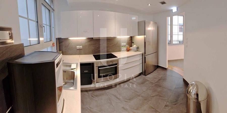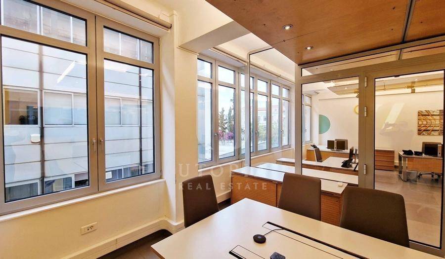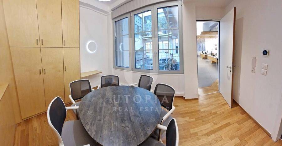 ΙΣΤΟΡΙΚΟ ΚΕΝΤΡΟ - Γραφείο 234τμ, με ηλεκτρικές συσκευές, 4 χώροι, 2ος (234τμ), ανακαινισμένο, κατασκευή 1965, ανακαίνιση 2020, ενεργειακή κλάση Γ, τύπος κατασκευής μπετόν, κουζίνα, μπάνιο, wc, αυτόνομη θέρμανση (κλιματισμός), κλιματισμός, διαμπερές, φωτεινό, διαμορφωμένος χώρος, βαμμένο, ψευδοροφή, δομημένη καλωδίωση, τύπος καλωδίωσης cat-6, ύψος οροφής 3.3μ, ασανσέρ, κουφώματα αλουμινίου, διπλά τζάμια, ανοιγόμενα παράθυρα, τύπος δαπέδων πλακάκι & ξύλο, τριφασικό ρεύμα, πόρτα ασφαλείας, συναγερμός, κάμερες ασφαλείας, εντός σχεδίου, οπτική ίνα, πλησίον τράπεζες (έως 100μ), πλησίον πλατεία (έως 100μ), πλησίον μετρό/ηλεκτρικός (έως 200μ), πλησίον αγορά (έως 100μ), πλησίον πάρκο (έως 100μ). Πρόσφατα ανακαινισμένος χώρος γραφείων που καταλαμβάνει έναν ολόκληρο όροφο, με κορυφαία υλικά από άποψης ποιότητας, αντοχής και αισθητικής. Ο χώρος περιλαμβάνει 1. Θέρμανση και ψύξη μέσω εσωτερικών κλιματιστικών μονάδων τύπου οριζόντιας τοποθέτησης κρυμμένες στην ξύλινη design οροφή, με πλήρη εξάλειψη τόσο του λειτουργικού τους θορύβου μέσω ηχομόνωσης πετροβάμβακα, όσο και της ροής του αέρα τους μέσω κατάλληλων ηχοπαγίδων. Ελεγχόμενες μέσω επίτοιχων control και μέσω Bluetooth από Web App (iOS & Android) της Daikin. 2. Δομημένη καλωδίωση για 25+ θέσεις εργασίας με παροχές ανά θέση: 3. Δίκτυο ethernet (Data & VoIP) 2 Χ RJ45 πρίζες, ταχύτητας 1 Gbps (Cat 6e), ρεύματος AC, ρεύματος AC μέσω UPS. 3. Meeting room με υψηλή ηχομόνωση. 4. Τραπεζαρία (Communal) με εντοιχισμένες ντουλάπες αποθήκευσης και ξύλινο δάπεδο (παρκέ). 5. Μεγάλη (οικιακού επιπέδου) καινούρια κουζίνα εξοπλισμένη με τραπέζι και ηλεκτρικές συσκευές 6. Rack-Server Room χωρητικότητας ενός Rack. 7. Μεταλλικές πόρτες ασφαλείας (ιδιοκατασκευές design). 8. Καινούρια κουφώματα ΕΤΕΜ top προδιαγραφών με τους μεγαλύτερους συντελεστές ηχομόνωσης και θερμομόνωσης της αγοράς. 9. Ηλεκτρικά roller blinds σε όλα τα παράθυρα (χρώμα ανοικτό γκρι). 10. Ηλεκτρικές σίτες εντόμων και εξωτερικά ρολά ασφαλείας αλουμινίου σε μερικά από τα παράθυρα. 11. Ξύλινη design οροφή μέσα στην οποία βρίσκεται κρυμμένος ο ηλεκτρομηχανολογικός εξοπλισμός του κλιματισμού του φωτισμού και των ηχείων. 12. Εγκατάσταση φωτισμού οροφής dimmable LED (κρυφού & Spot) πολύ χαμηλής κατανάλωσης ρεύματος. 13. Μεταλλικό μπαλκόνι περιμετρικά του φωταγωγού εξοπλισμένου με γλάστρες και αυτόματο πότισμα για φύτευση φυτών έξω από τα παράθυρα που βρίσκονται στον φωταγωγό. 14. Κατασκευασμένες υποδομές οπτικών ινών για άμεση σύνδεση με πάροχο τηλεφωνίας & Internet (Vodafone) με οπτική ίνα ταχύτητας 300Mbps upload & download (μισθωμένο κύκλωμα). (Η εγκατάσταση οπτικής ίνας στο ιστορικό κέντρο της Αθήνας είναι πολύμηνη και ακριβή διαδικασία, στο ακίνητο έχει ήδη ολοκληρωθεί και εξοφληθεί). Προαιρετικά στην περίπτωση επιθυμίας του ενοικιαστή μπορεί να συμπεριληφθεί και ο παρακάτω εν λειτουργία ενεργός εξοπλισμός με αναλογική αύξηση του ενοικίου: - Μεταλλικό τροχήλατο Server Rack Enclosure, ενεργός εξοπλισμός ενσύρματου δικτύου (HP switches 1Gbps), πρωτεύουσα Μονάδα UPS της Schneider (APC) για αδιάλειπτη παροχή ρεύματος στο Server Rack Enclosure, δευτερεύουσα μονάδα UPS της Schneider (APC) με μπαταρίες πολύ μεγάλης χωρητικότητας για τροφοδοσία όλων των θέσεων εργασίας, ηχητική εγκατάσταση 12 ηχείων (κρυμμένα στην οροφή), Κονσόλα ήχου για τον έλεγχο και την τροφοδοσία των 12 εγκατεστημένων ηχείων οροφής με διαχωρισμό ηχητικής κάλυψης ανά χώρο, σύστημα συναγερμού PARADOX (εγκατεστημένου πρόσφατα) με έλεγχο μέσω σWeb App (iOS & Android), κάμερες ασφαλείας HikVis
