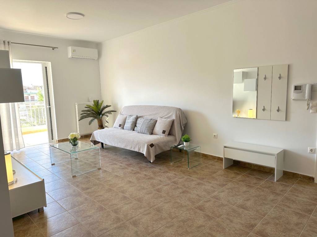 NAYPLIO | Penthouse apartment, 60,39m2, 3rd floor. Construction date 2006. Open-plan kitchen, 1 bedroom, and bathroom. Big balcony with retractable roll-up awning. Equipped with solar water heater, aluminium double-glazed windows with retractable security grilles, and security door. Independently operated central heating, and parking space. B+ energy class Really bright and sunny with an unrestricted view. At night you can even enjoy a part of the lit up Palamidi castle from the balcony. +30 694 156 3939 (viber, WhatsApp)