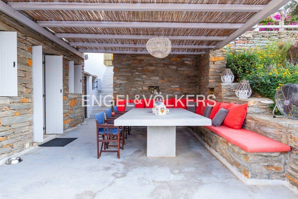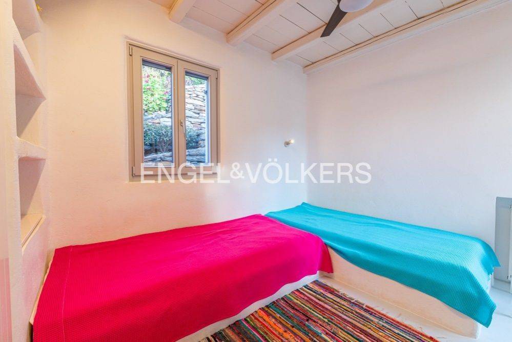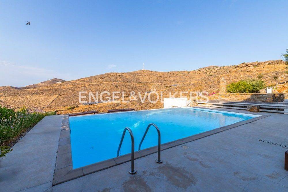 Two maisonettes with sea view, in the area of Otzias in Kea. The 2 houses, with a total area of 284 sq.m., are located on a sloping plot of 4,000 sq.m. and offer a wonderful view. The first residence occupies 131 sq.m. and offers on the ground floor living room/dining room with fireplace, open plan kitchen, 2 bedrooms, 1 bathroom and W.C. On the 1st floor are 2 additional bedrooms that share 1 bathroom. The second residence of 153 sq.m. has on the upper level a living room/dining room with fireplace, open plan kitchen, 1 bedroom with en-suite bathroom, and W.C. The ground floor consists of 2 bedrooms with en-suite bathrooms, maid's room, laundry room and W.C. In the beautifully landscaped surroundings, there is a shared swimming pool, living, dining, and BBQ areas. In addition, the property has 2 warehouses and parking. The island of Kea (also sometimes called Tzia) is well known for its exceptional beaches and some of the best walking paths and trails of any of the Greek islands. Relatively close to the Attica peninsula of the Greek mainland, Kea is easily accessible (1 hour by ferry to Lavrio port) and offers stunning scenery made up of mountains, olive groves, vineyards, picturesque coves and the superb beaches. Villa Gemini is located close to Otzias beach, 4 km from Vourkari Marina and 5 km from Korissia port,