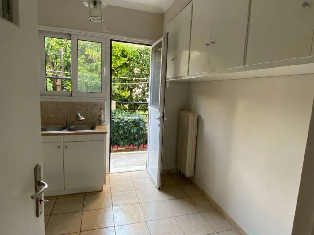 (code 210121) Glyfada, Ano Glyfada: Apartment for rent 50 sq.m. on the ground floor with central oil heating. It consists of 1 bedroom, 1 kitchen, 1 living room, terrace, storage room and bathroom. It is painted. It is located close to public transport, market, schools and has aluminum frames with double glazing, security door, air conditioning, boiler, energy class D, tiled floors, mosquito nets. It is ideal for a couple, students or workers.