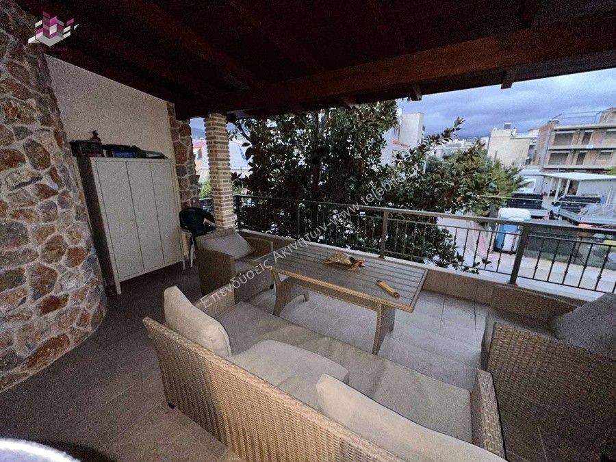 MENIDI - In a magnificent stone-clad duplex house, which exudes warmth and traditional character, a stylish 100 sq.m. penthouse apartment is for sale on the 1st floor. The property, built in 2005 and completed in 2016, impresses from the first moment with its high ceilings and exposed wooden beams that give a country house atmosphere, in harmony with the elegant fireplace that dominates the living room and dining room. The independent kitchen has ideal spaces and functionality, while the three bedrooms are particularly comfortable, offering comfort to a family or couple looking for more space. The bathroom is modern and neat, while the large openings allow natural light to bathe the apartment, which is bright and front-facing. The house has autonomous heating, solar water heater and air conditioning, and has an energy class D. The modern aluminum frames with double glazing and screens, the tiled floors and the armored door enhance the security and comfort of everyday life. On the facade, a beautiful terrace of approximately 20 sq.m. with a built-in barbecue offers an ideal space for relaxing or hosting friends, with an open horizon and a sense of privacy. A special apartment with a warm atmosphere, quality construction and character that is difficult to find. price 220.000€ (negotiable), code 21063 , ADVISERS & ESTIMATES OF REAL PROPERTY, 210-9614621, 6977-380335, www.telebite.gr